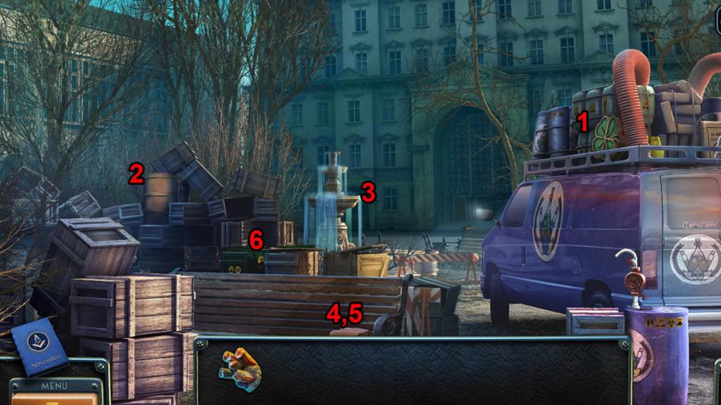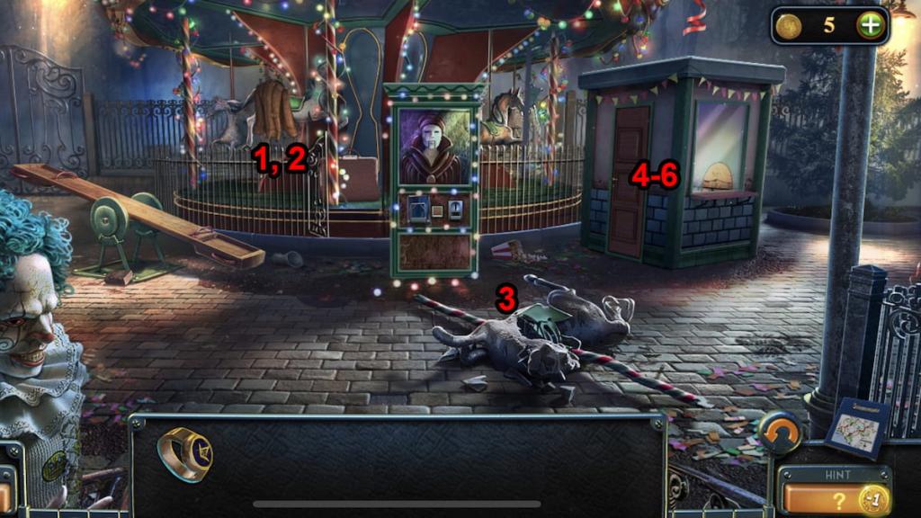 これらの地域からいくつかの役立つアイテムがあるので、元のカーニバルエリアに戻っても安全です。次の手順を実行する前に、画面の下部にある矢印を使用してここに戻り、次のパズルのセットを解決します。