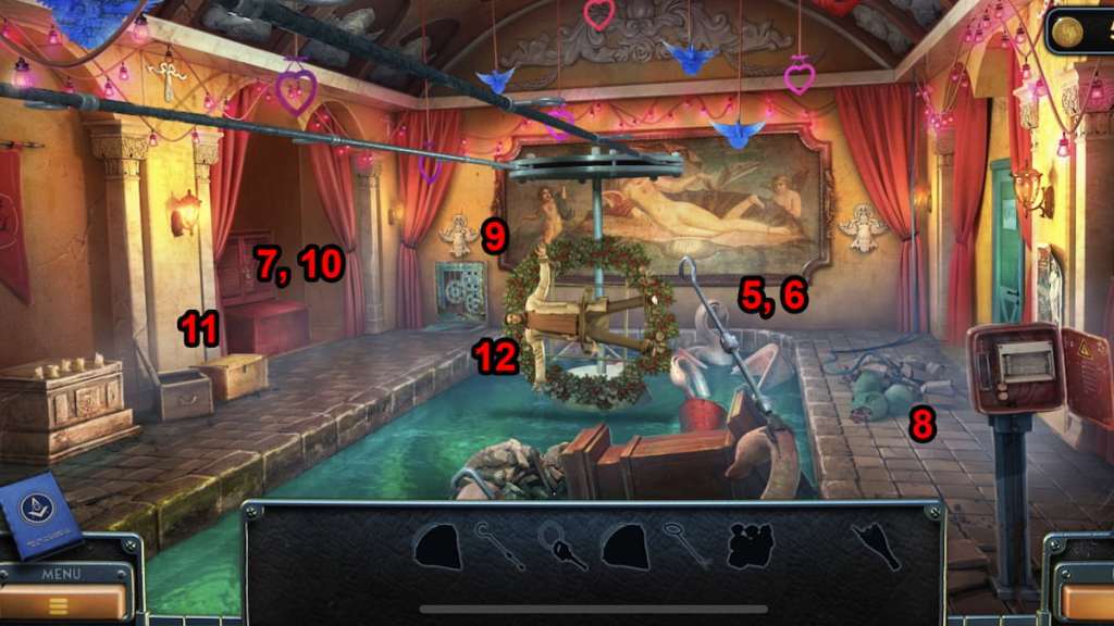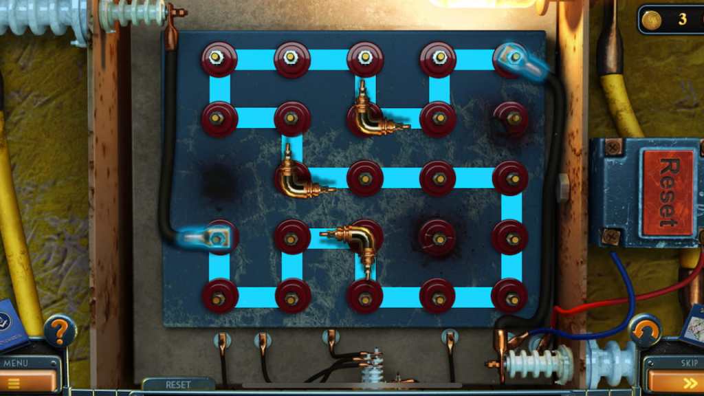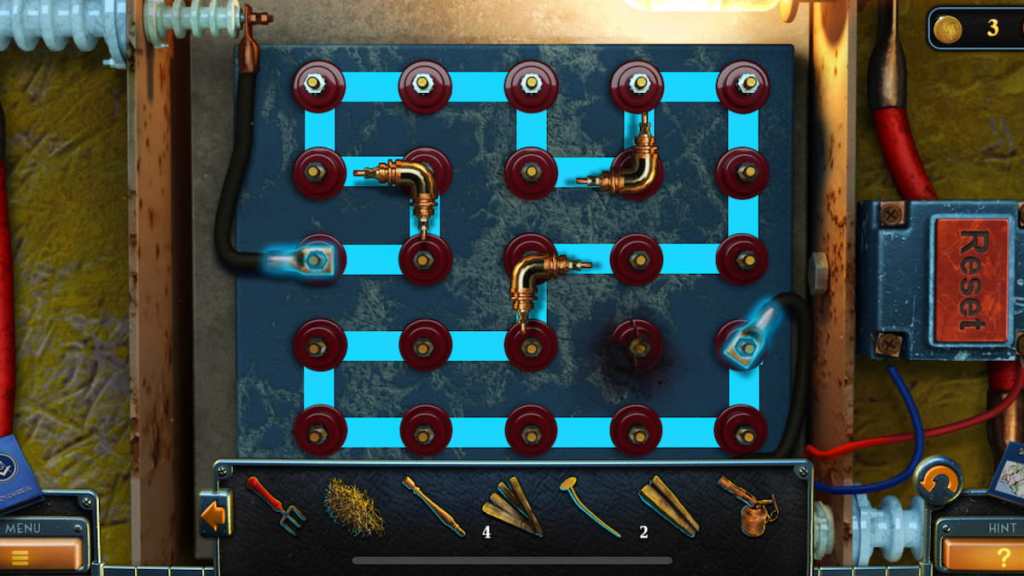 このパズル中に、青いハイライトに基づいて在庫にさまざまなオブジェクトを配置して、貯水池を再組み立てしてアクティブにします。アクティブ化する必要があるすべてのコンポーネントは次のとおりです。