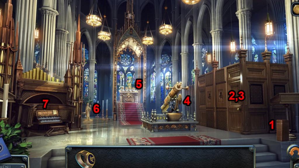 - 大聖堂のドアの上の窓をタップしてオブジェクトのモーフィング収集可能。
