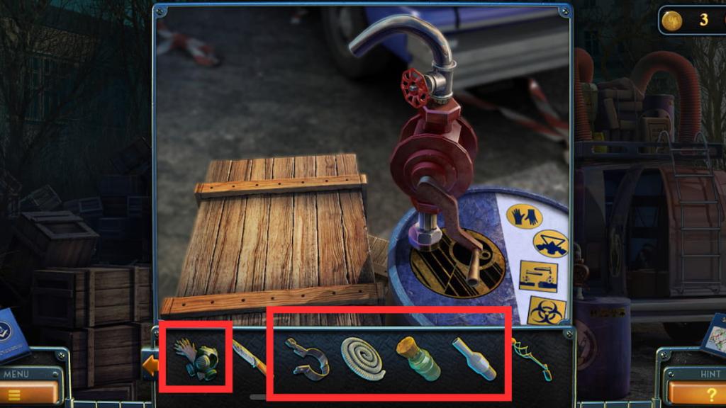 私たちは現在、トラビスを求めてウォーターポンピングステーションの施設内にあります。階段の横にあるモーフィングオブジェクトを収集した後、画面の左側にあるワークショップエリア内の木製の木枠を開きます。内部には、施設の反対側の黄色いドアに使用できるバルブがあります。