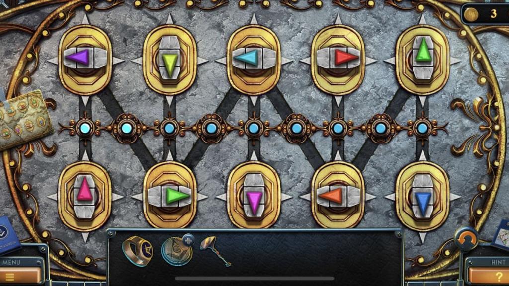 今では、5つのゲームピースすべて、2つのトークン、および以前のステップから5つのオブジェクトを使用する必要があります。これで、車のトランクのパズルボックスを解く手段があります。これと対話すると、色付きの列車のパズルが開始され、各列車をタップしてまっすぐな道に沿って送ることで完了します。これは、最初のシーケンスを選択する列車の完全なリストです。