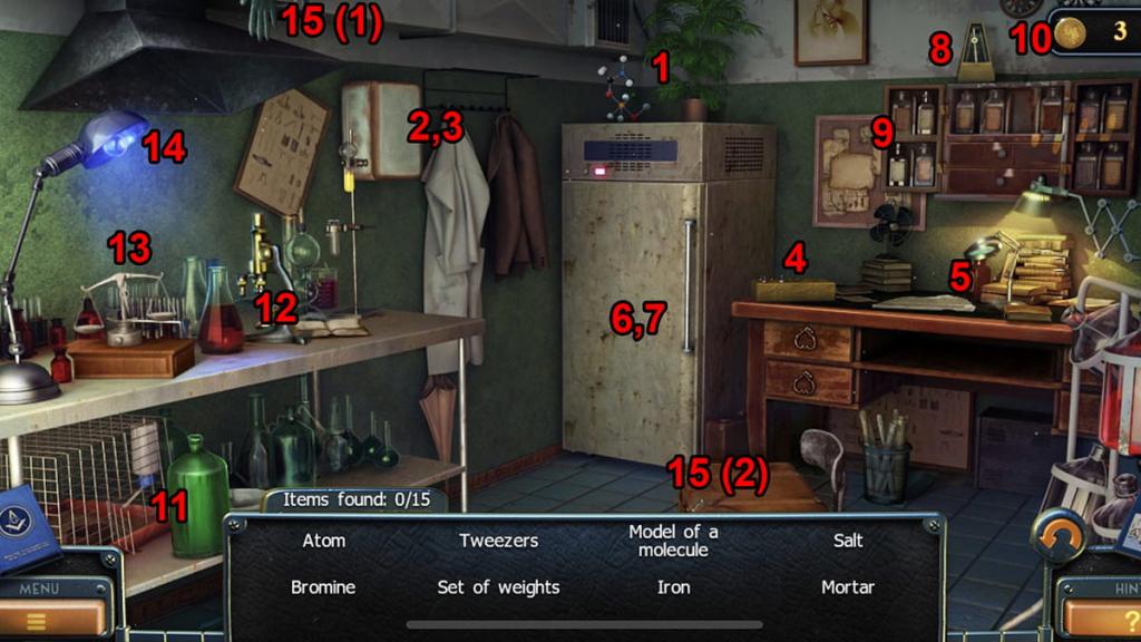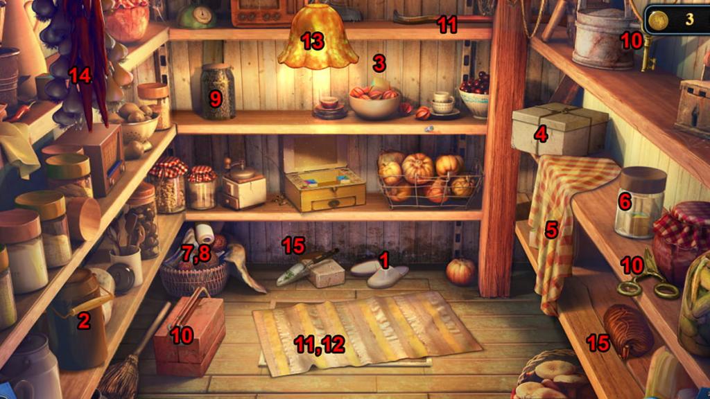 このパズルを完了すると、このパートの後半で使用する別のキーであなたに報酬を与えます。他のエリアの階段を下る前に、このカメラで謎に取り組む必要があります。とりあえず、赤い戸口に向かい、冷蔵庫を選択してミニスカベンジャーハントを開始します。これがすべてのアイテムとその場所のリストです。