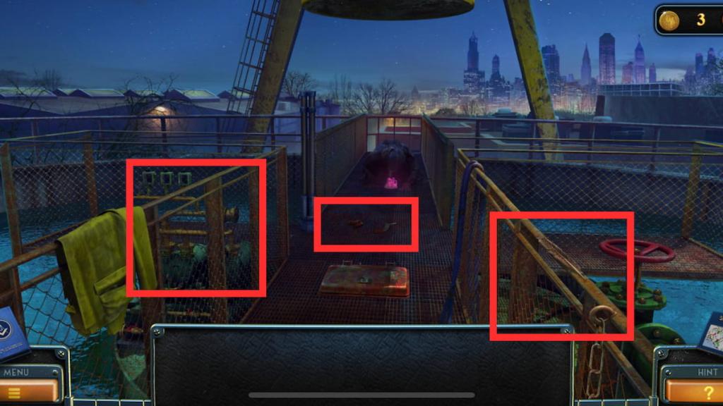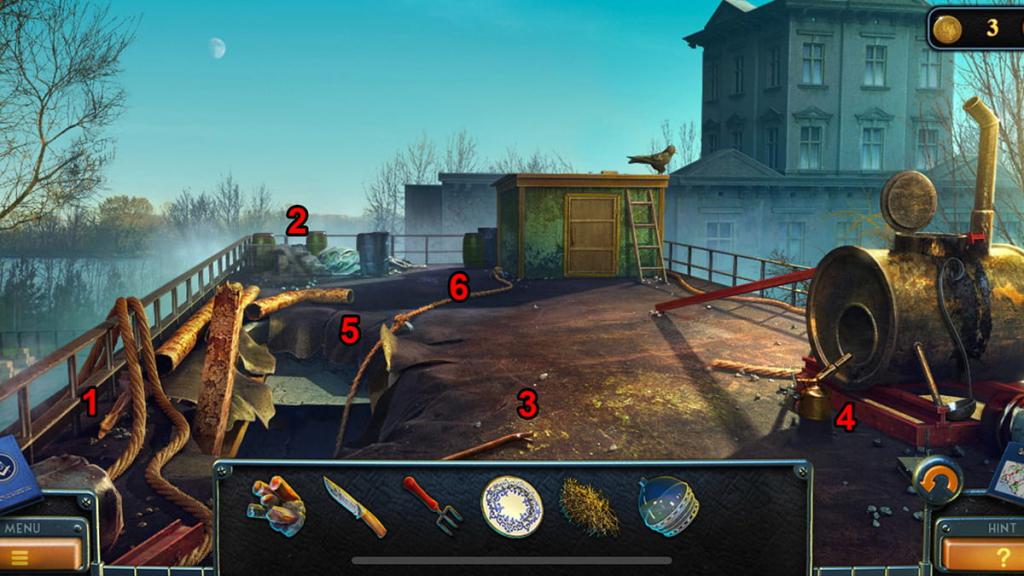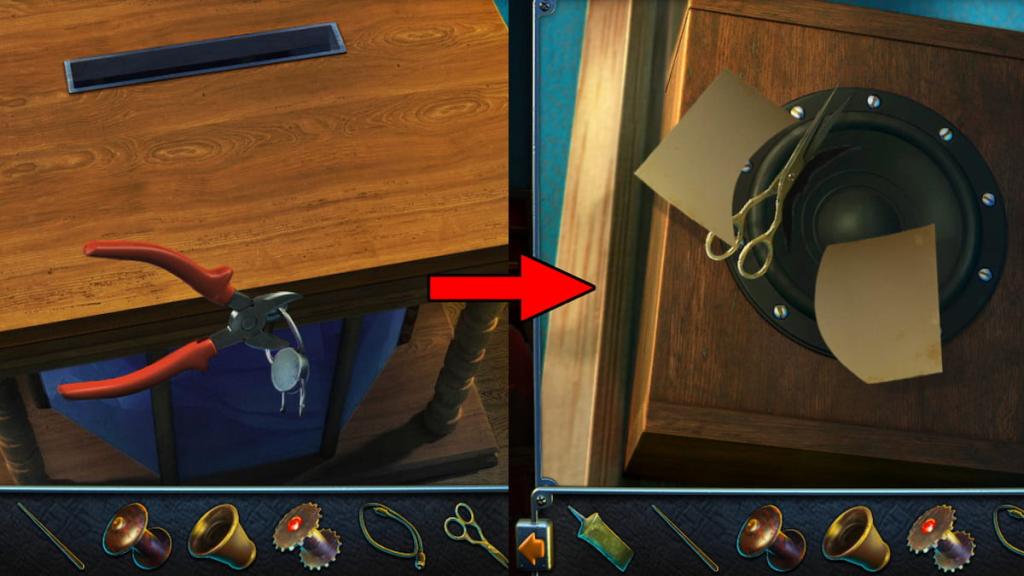 この新しい部屋の中で、ランプで照らされた2つの領域をタップします。赤いボタンを押す必要があり、キーであなたに報いる必要があります。出発する前に、最適なデスクの下にモーフィングオブジェクトを見つけることができます。ここから、橋に戻り、キーを使用して地面のラッチのロックを解除し、小さなパズルにつながります。