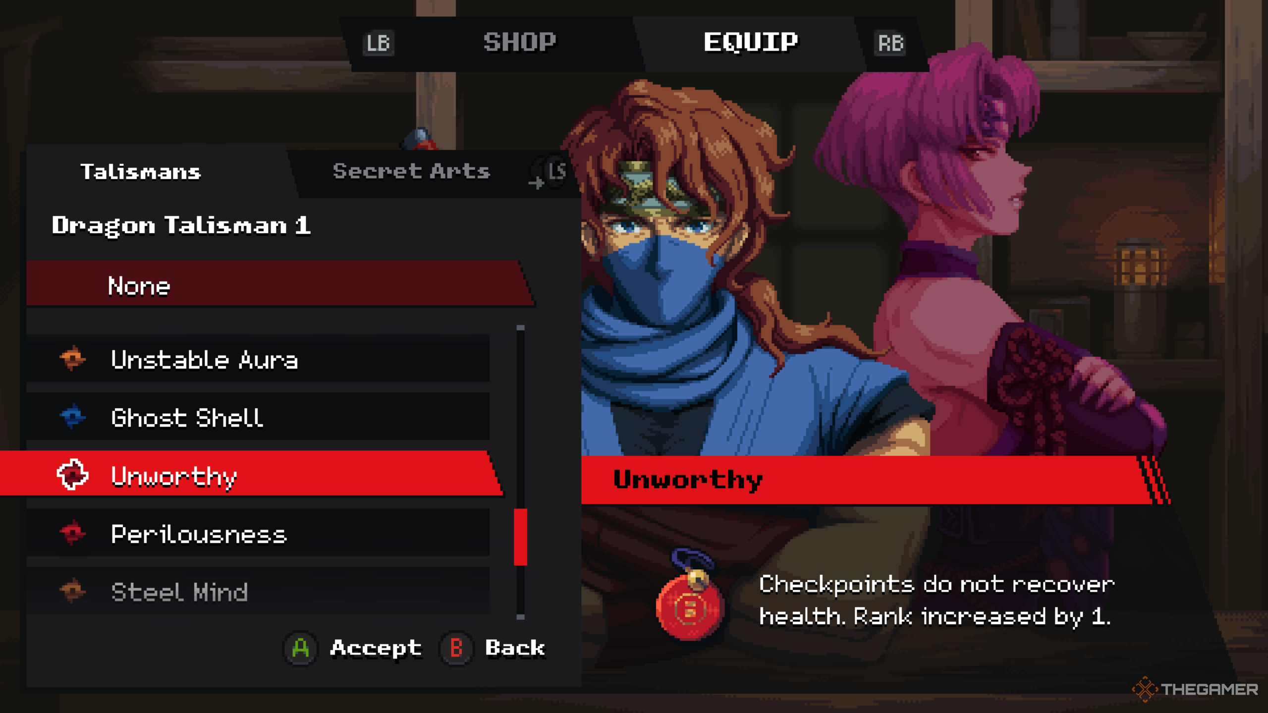 Ninja Gaiden:RageBoundでいくつかのレベルを進めたら、ロックを解除しますムラマサの店は、あなたがタリスマンを見つける場所です。これらの特別なアイテムのほとんどは、健康のようなバフをチェックポイントで完全に復元することができますが、あなたが死ぬとステージの始まりに連れて行くものを含め、あなたをデバフする否定的なものもあります。
