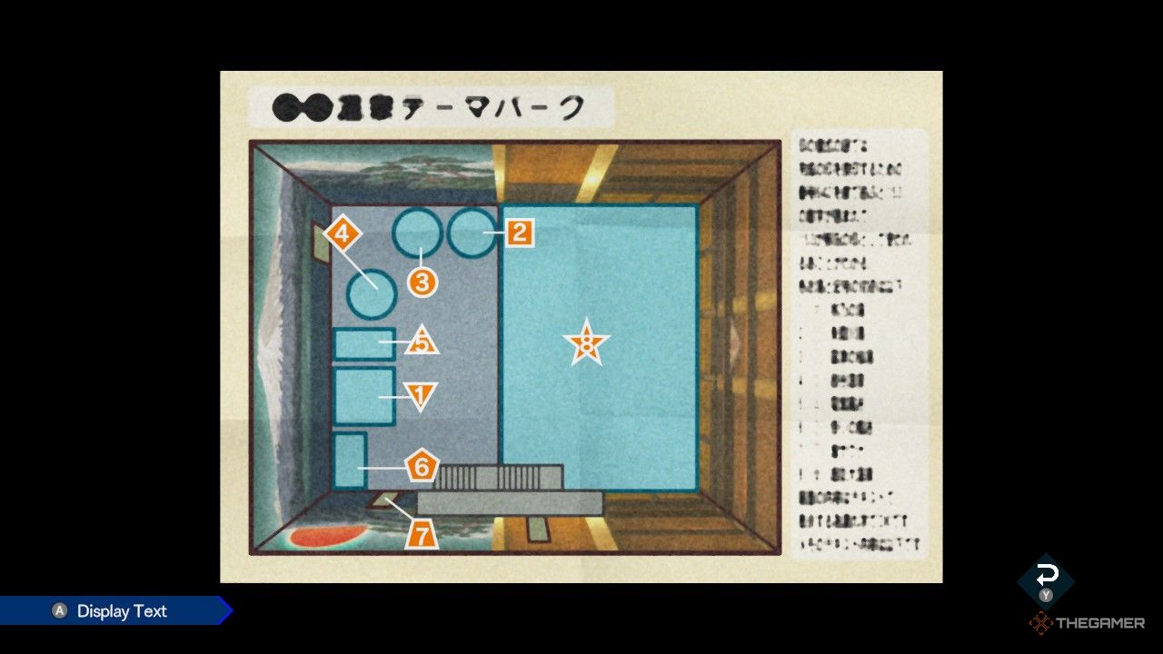 ここでは、使用してラベル付けされた浴場が表示されますさまざまな形状の中に囲まれた数字、画面に1つから8つの存在があります。メモはOTAに指示します太陽に最も近い順にこれらの数字を入力します、カードの背面にあるマップの左下隅に表示されます。