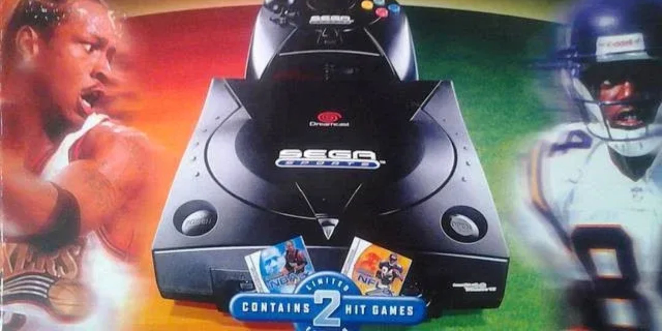 Sega Sports Dreamcastが入ってきましたすべて黒、標準バージョンの白とは対照的に、ディスクの蓋にセガスポーツロゴがありました。また、束ねられましたNFL2KおよびNBA2K、コンソールの4つのコントローラーポートを備えたカウチゲームに最適です。