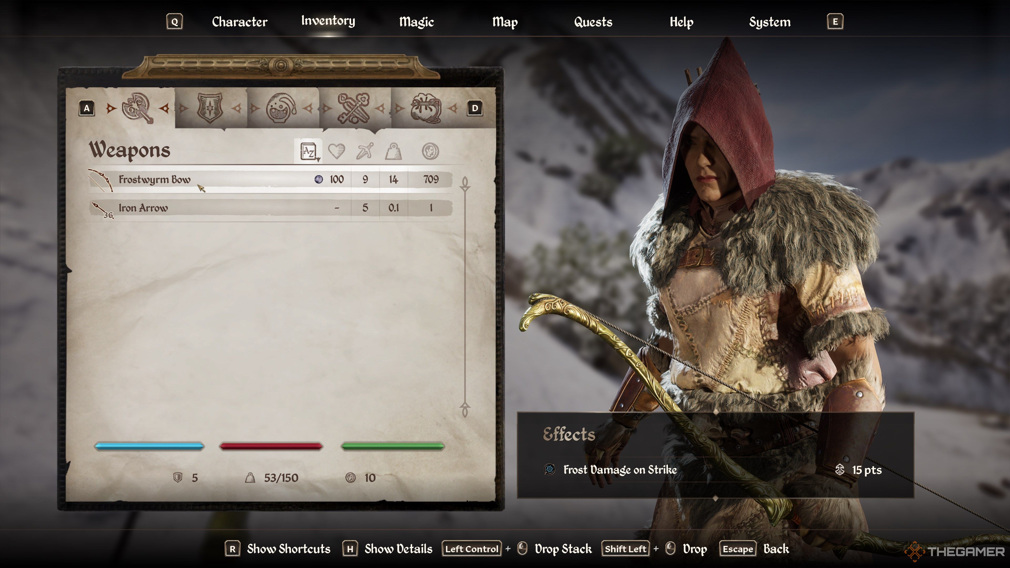 frostwyrm下水道を離れた直後に得られる強力な弓です。 Cyrodiilの北東の角にあるDive Rockに向かいます。あなたは放棄されたキャンプに近くの霜のトロールへの道順を備えた本を見つけるでしょう。トロールを殺し、その死体を略奪して、この弓を手に入れましょう。 15ポイントの霜のダメージが魅了されており、初期のゲームでほとんどの敵を即座に殺すはずです。このトロールはかなりタフなので、事前にいくつかのポーションと矢を持ってきてください。