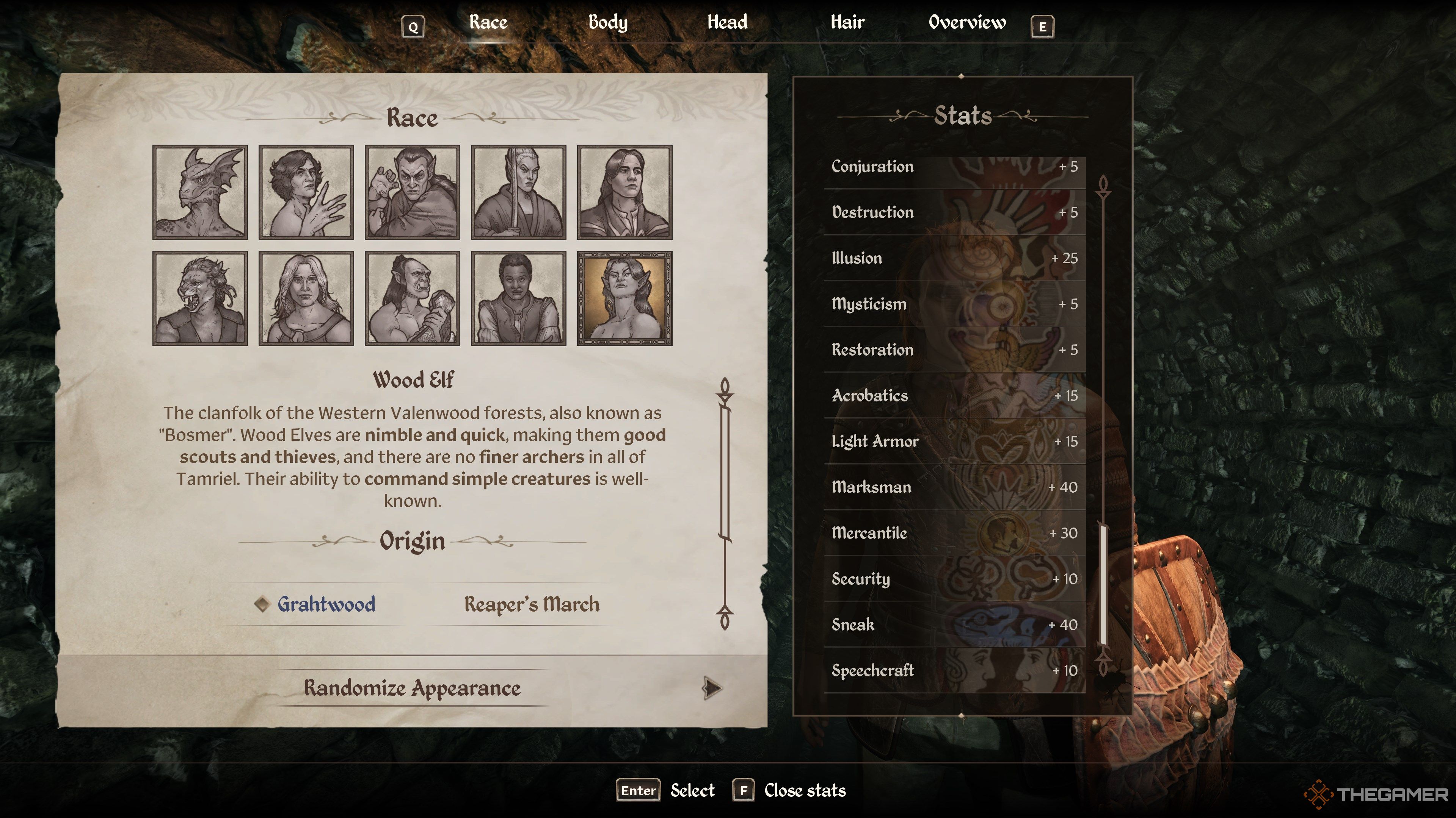 競争できるレースはほとんどありませんウッドエルフアーチェリービルド用。このレースは、マークスマン、スニーク、幻想、ライトアーマーにかなりのボーナスを獲得します。俊敏性とスピードの統計ブーストは、このような遠隔ビルドにとっても例外的であり、戦闘から疾走したり、次の矢をノックしたりするときに、常に疲労があることを保証します。