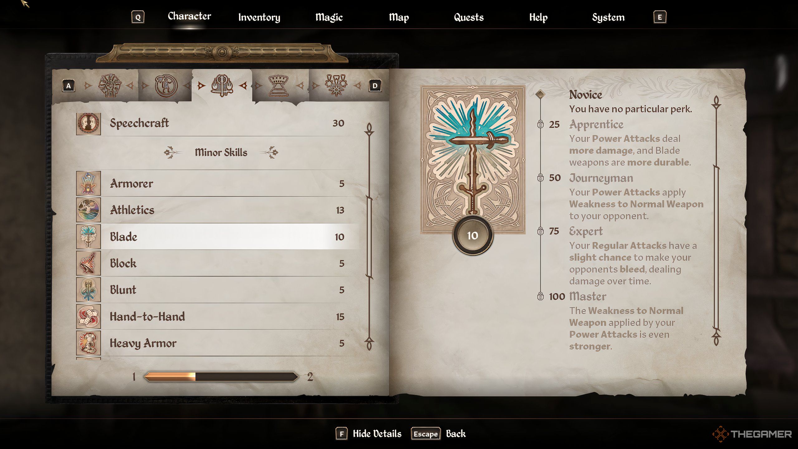 ブレードスキルは、近い四分の一で敵と戦うのが好きなヒーローのパンとバターです。このスキルは、キャラクターがブレードタイプの近接武器をどれだけうまく処理できるかを支配し、スキルレベルが高いほど敵に大きなダメージを与えます。さらに、統計が高い場合、武器はよりゆっくりと劣化します。