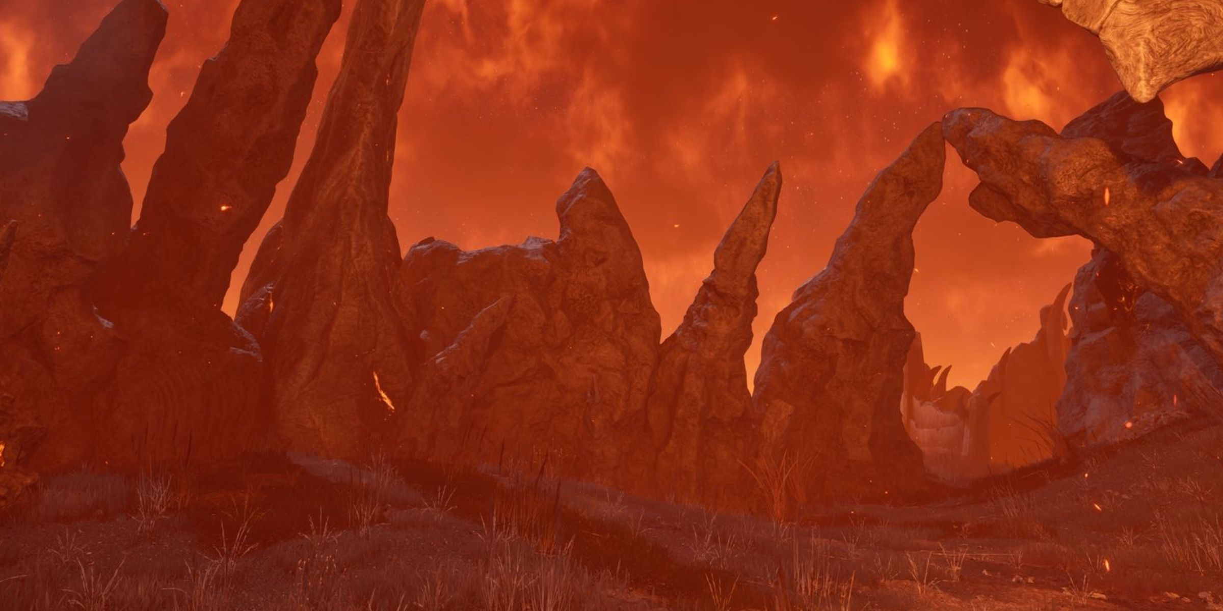 このオープンプレーンは、ランダムな忘却の世界の中でユニークであり、それははるかに水平であり、探索するのが苦痛ではないという点です。他の飛行機やそのタイトな迷路のレイアウトと比較して、これはCyrodiilの周りを探索するようなものですが、運命のような燃えるような地獄の美学があります。