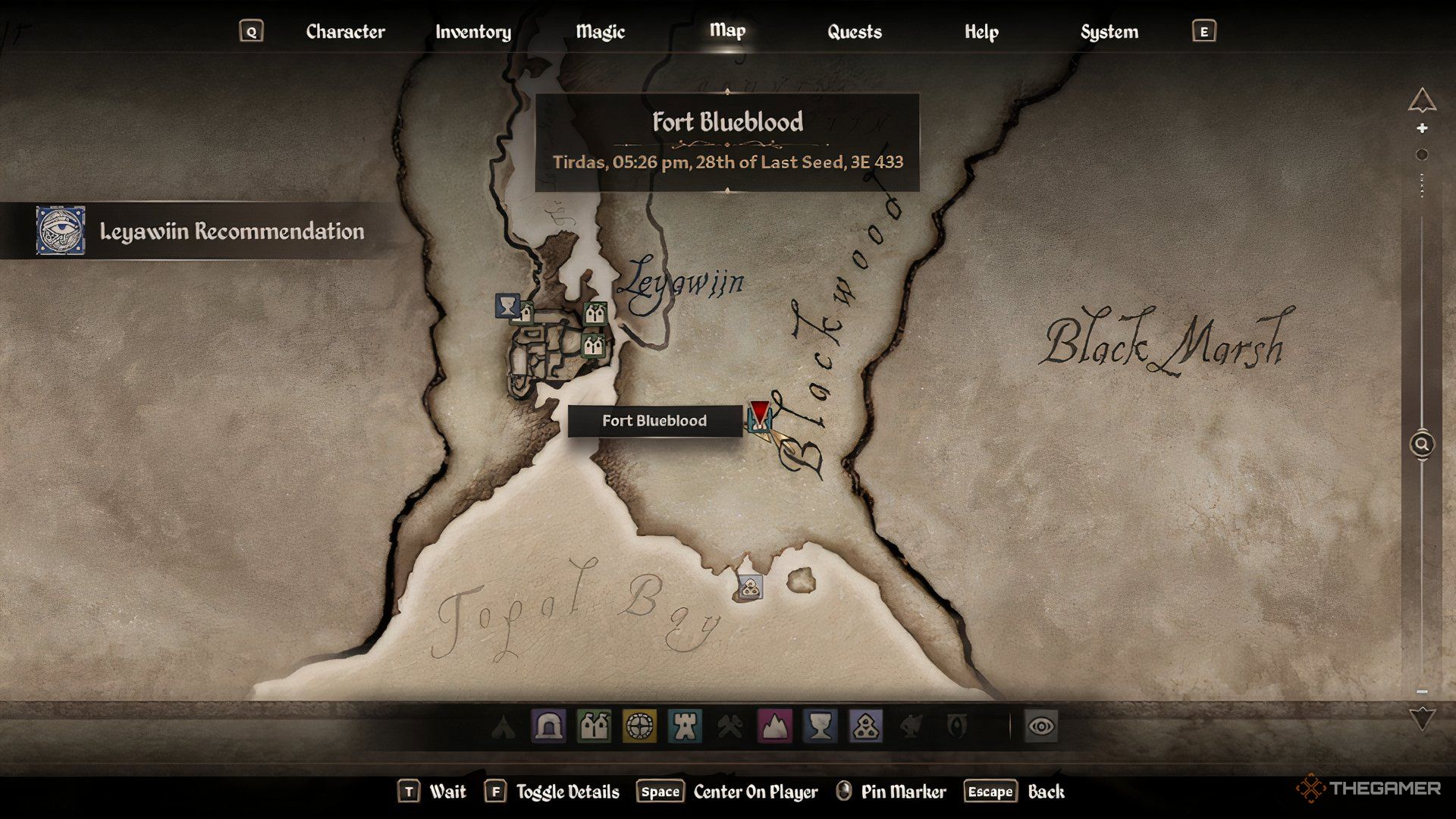 Dagailと話をしたら、クエストが更新され、地図上にフォートフォートブルーブラッドをマークします。そうですレイヤウィンの東「Blackwood」の「B」と「L」の上に。