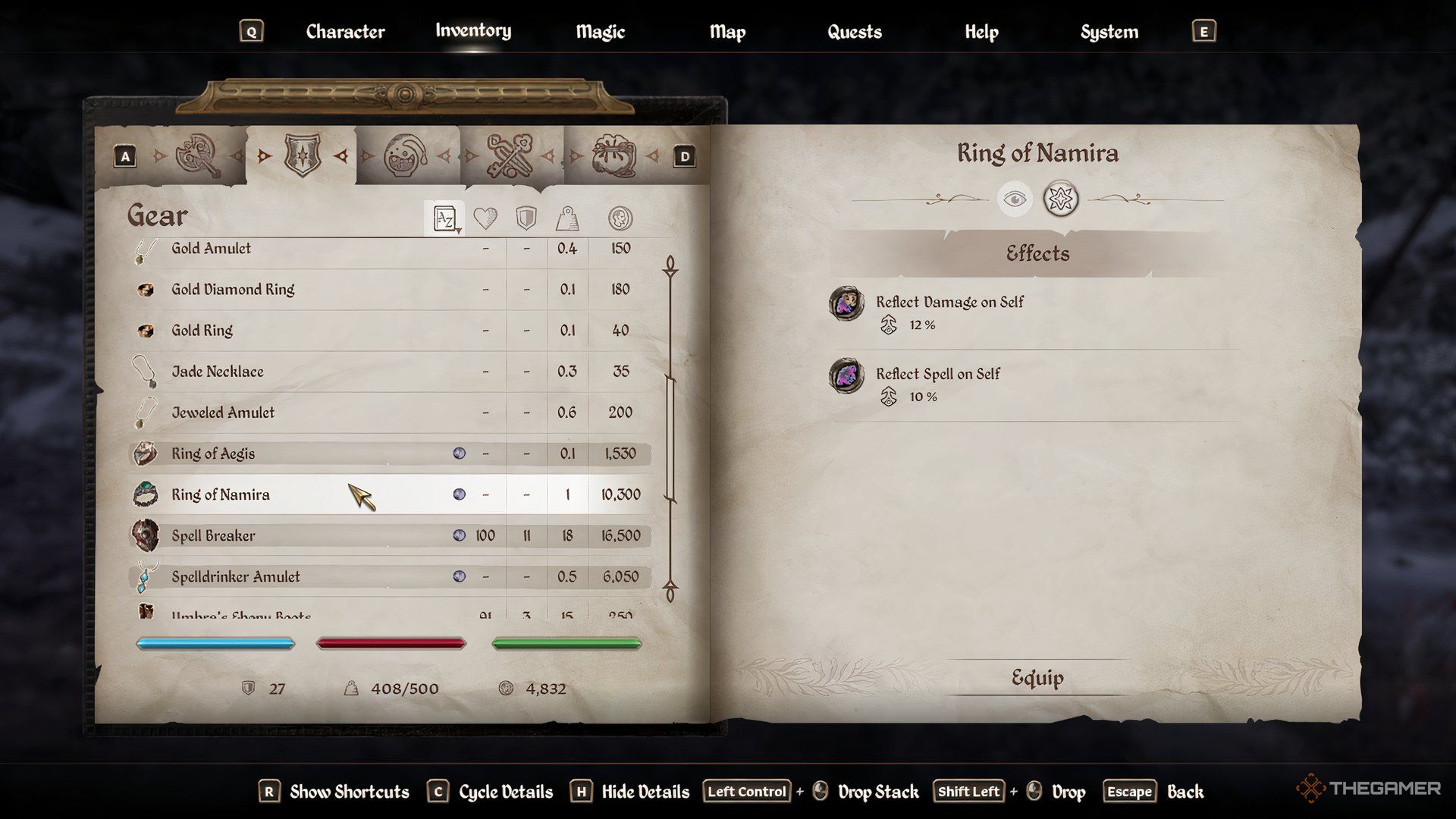 司祭が対処されたら、神社に戻ってナミラと話すことができます。あなたが司祭を攻撃しないでください代わりに呪文を使用します、彼女はそうしますナミラのリングであなたに報酬を与えてください。リングには一定の効果エンチャントがあります12パーセントはダメージを反映し、10パーセントは呪文を反映しています。