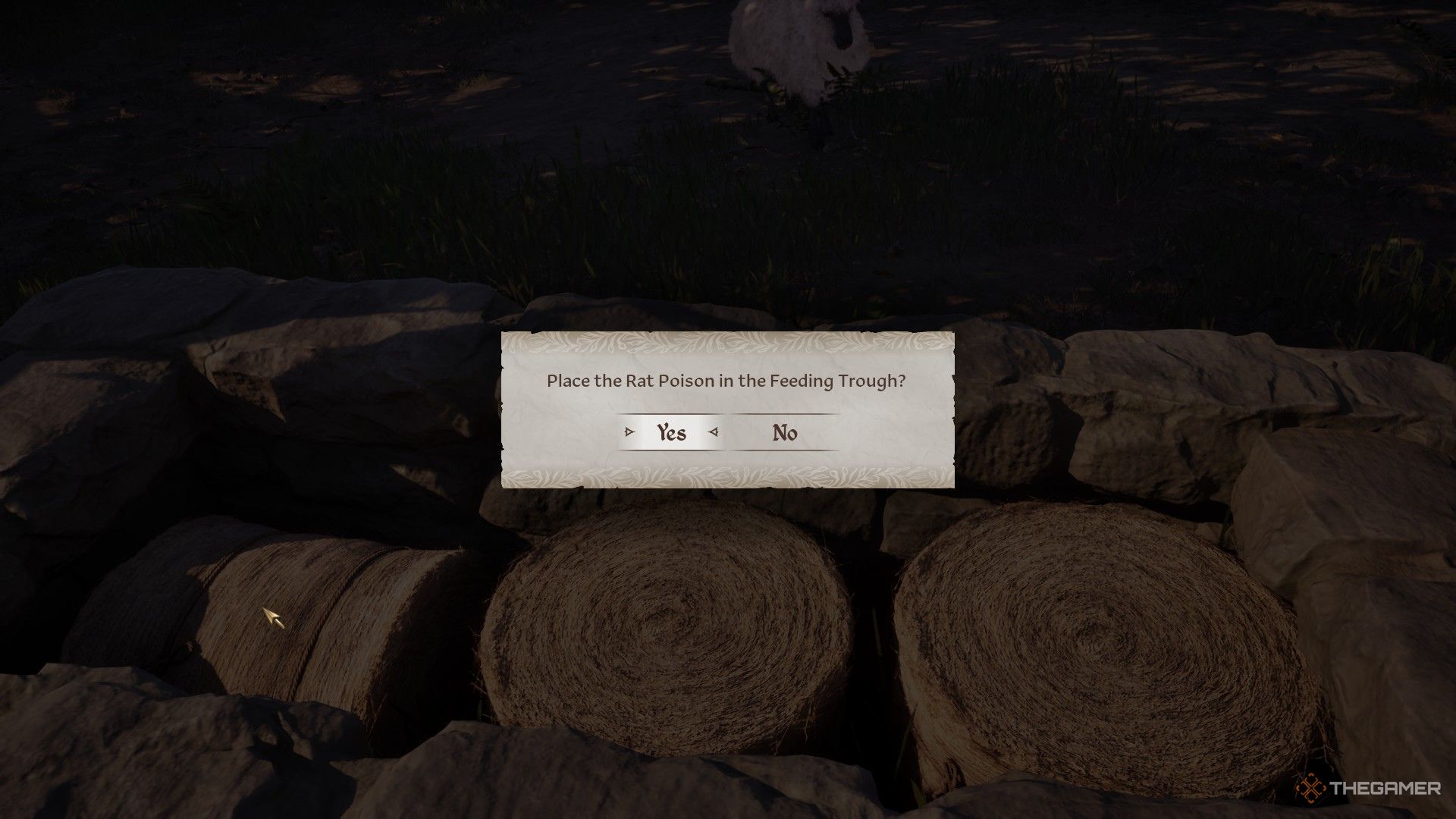 ラットの毒を拾った後、できます集落が羊を飼っているエリアに向かい、ラットの毒を摂食トラフに混ぜ合わせます。これで、各羊が摂食トラフから食べるまで待たなければなりません。ここで数時間待つことができます、そして、しばらくすると羊はすべて一度に死ぬでしょう。