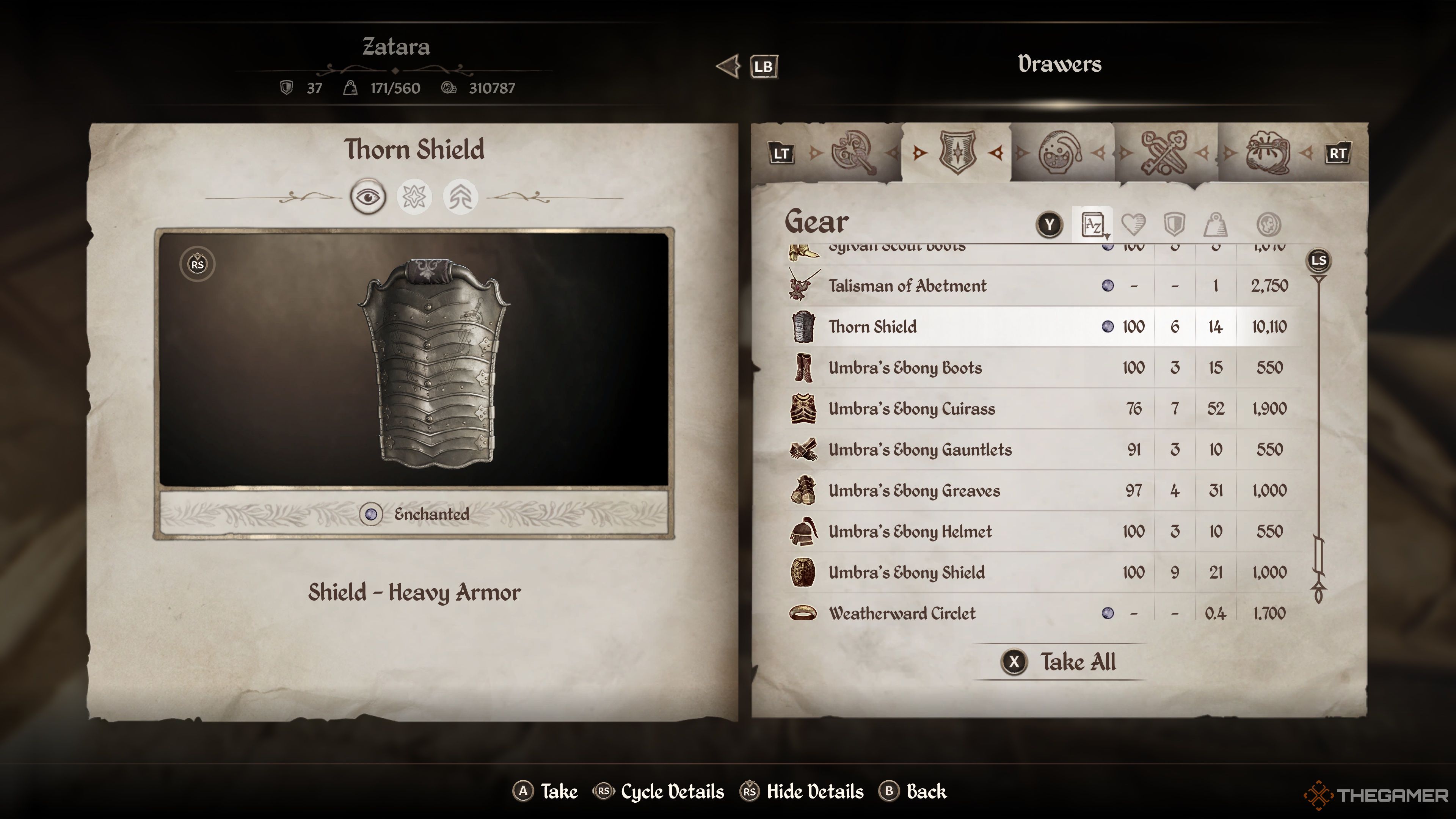 ただし、待機して可能な限り最高のバージョンを取得することをいとわない場合、Thorn Shieldは、ダメージ、特に呪文をそらすことに焦点を当てたビルドの大きな部分になります。大規模な要塞ボーナスを考えると、ブロックの有効性もはるかに優れています。