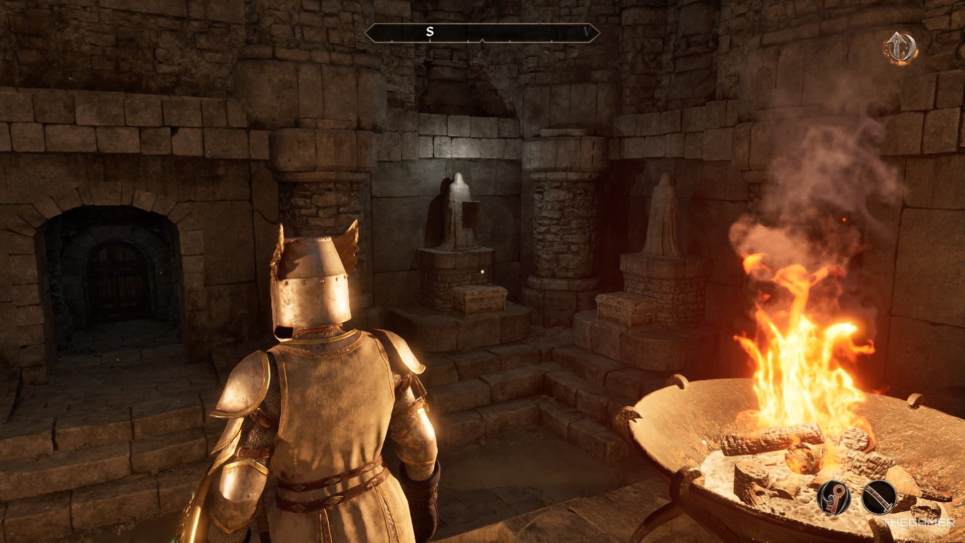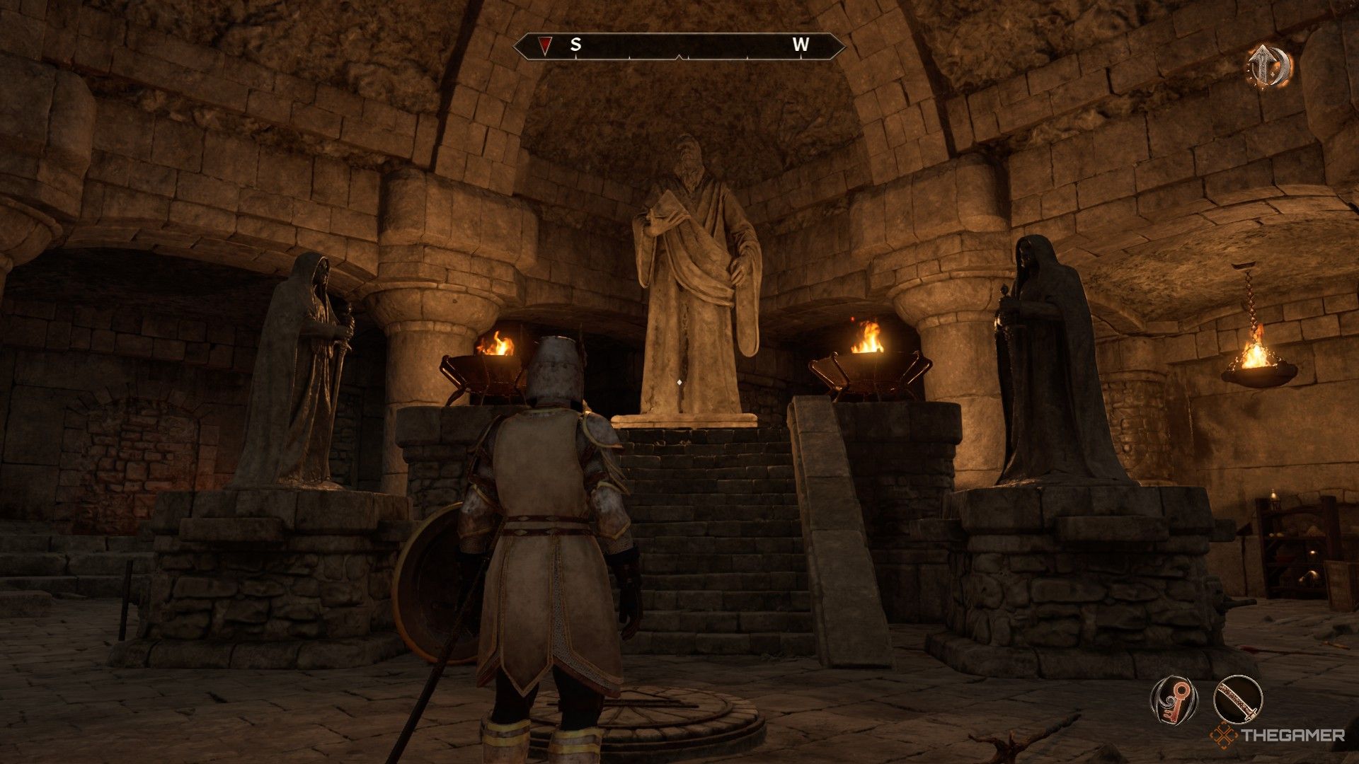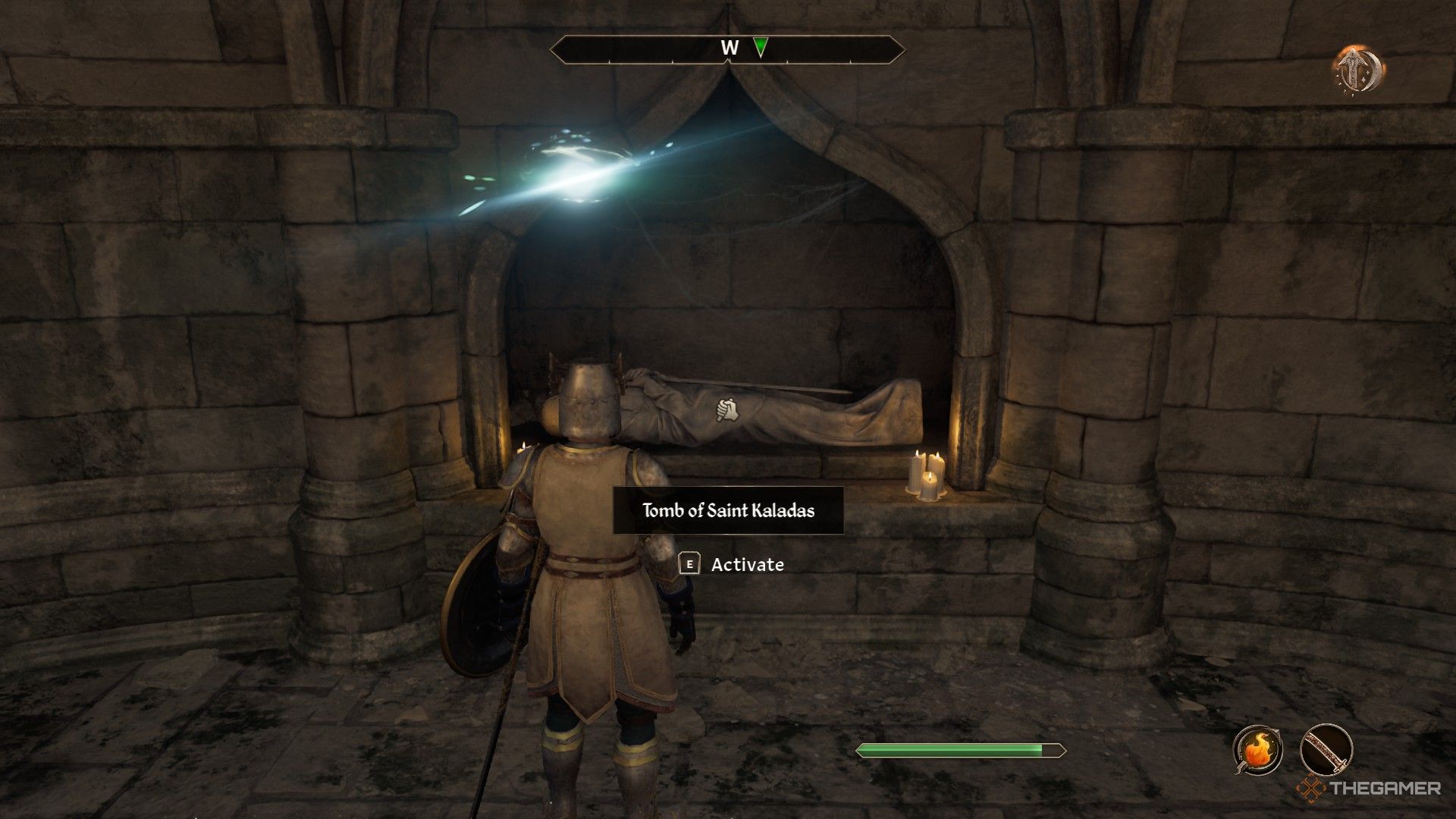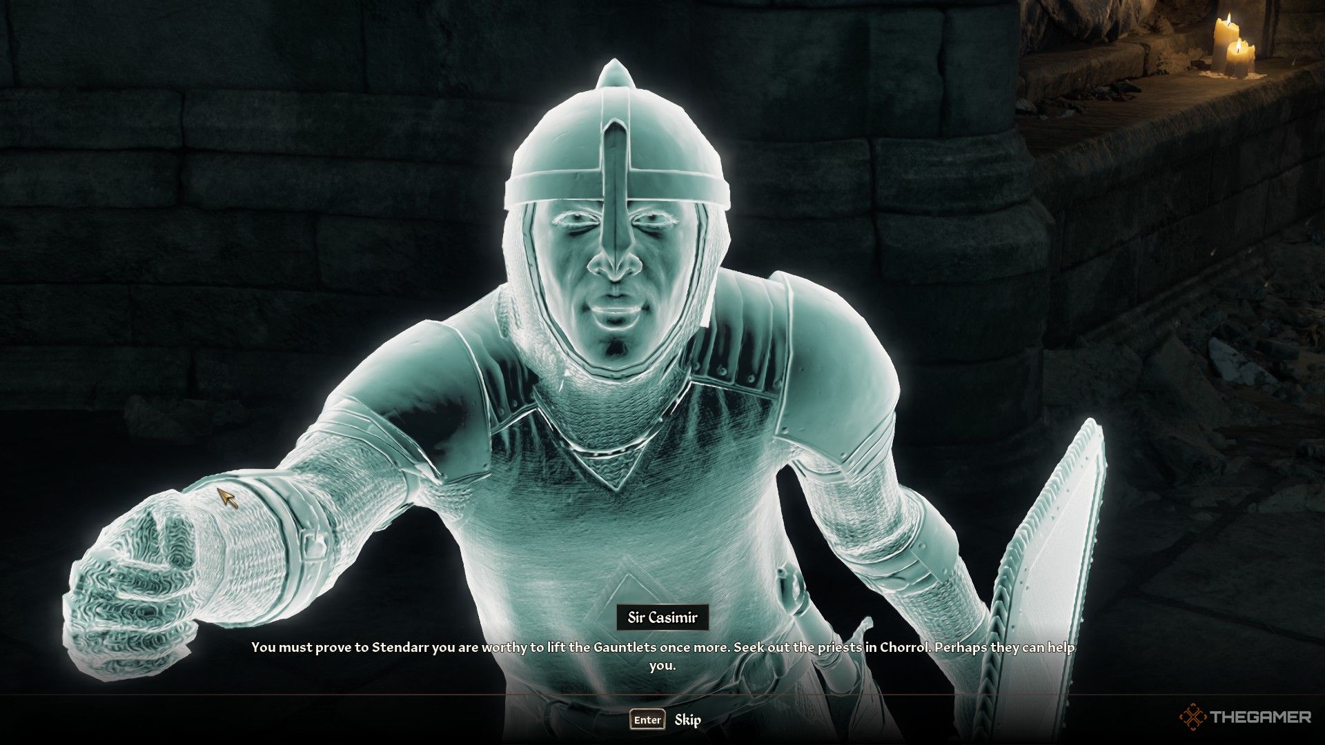 ステンダーの偉大な礼拝堂に旅行しますコロールで。入ると、左後隅にガントレットがあります。それらと対話する必要があります、しかし、あなたは彼らが動かないことがわかります。