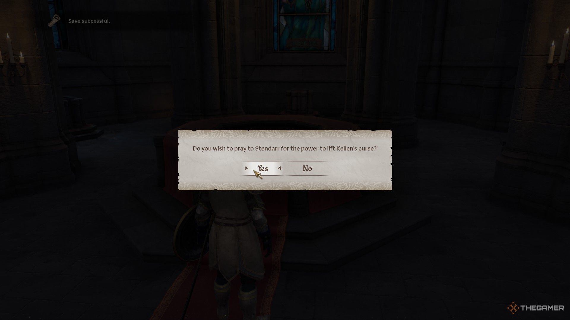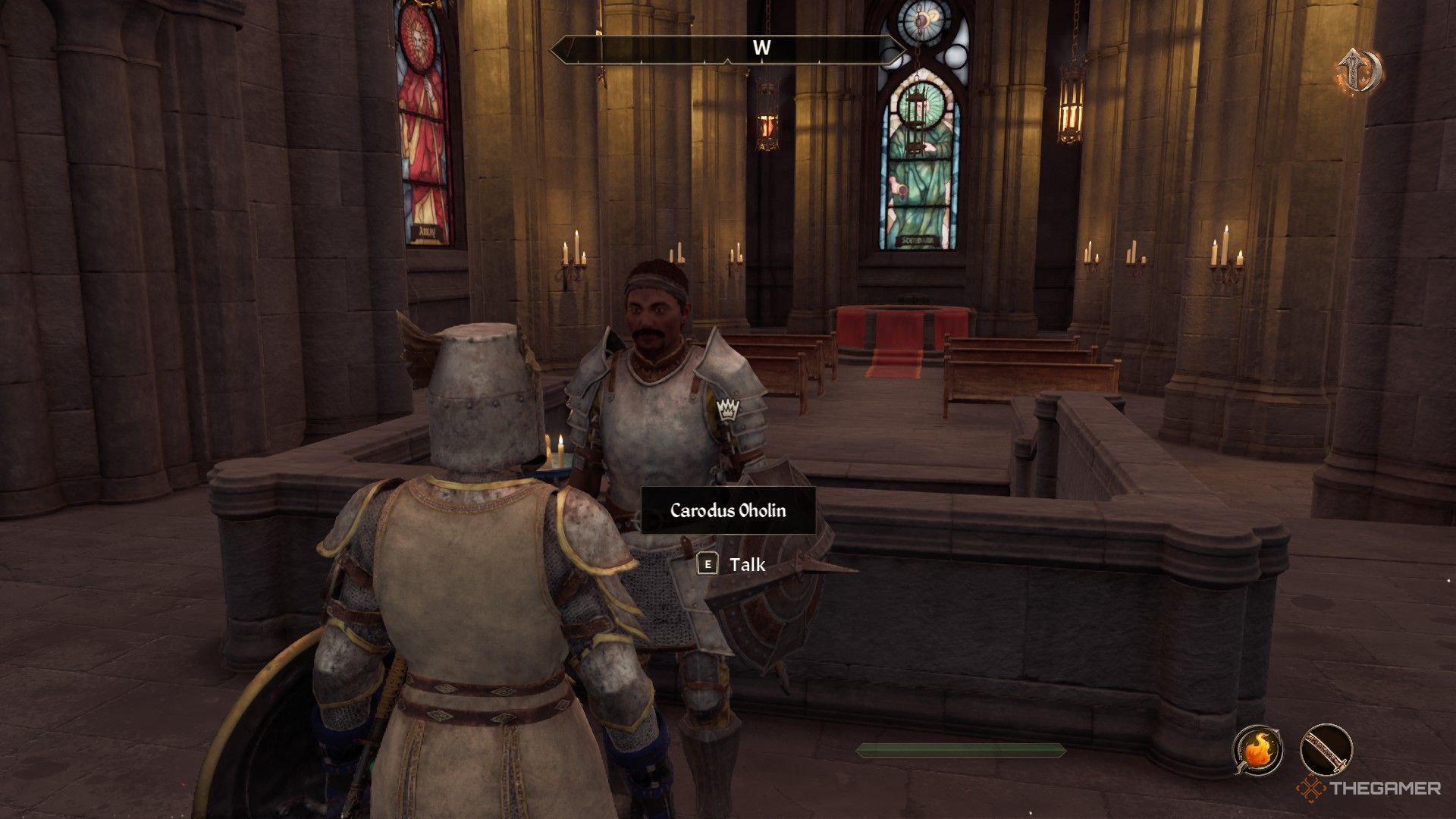 メイスを取った後大礼拝堂の上層階に戻ります、いくつかのオーロランが現れ、あなたを待ち伏せします。それらをすべて倒してから、カロダスオハリンirと話す誰があなたの探求に参加することを申し出ます。あなたは彼を無料のフォロワーのために受け入れるか、彼に礼拝堂にとどまることができます。