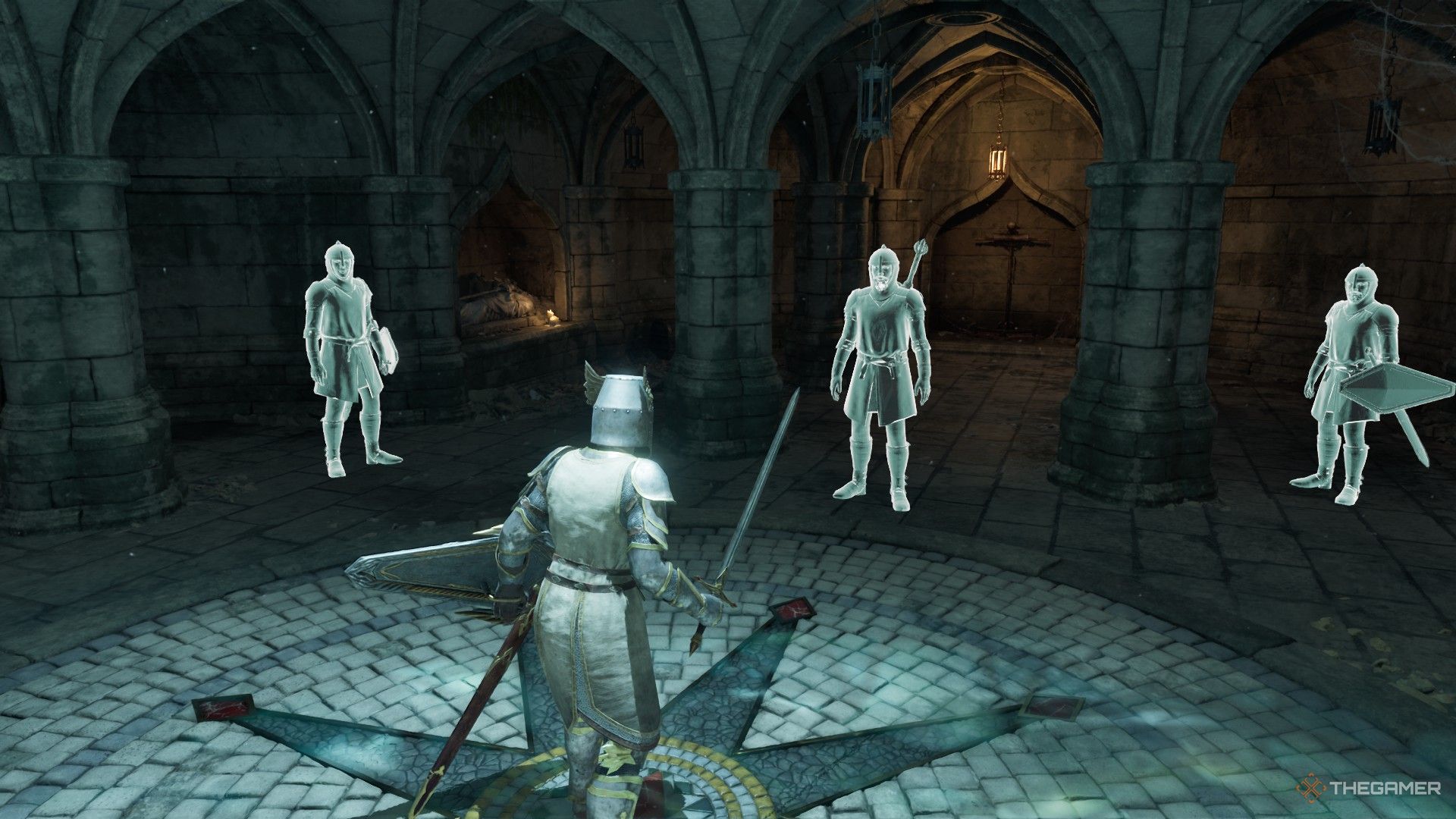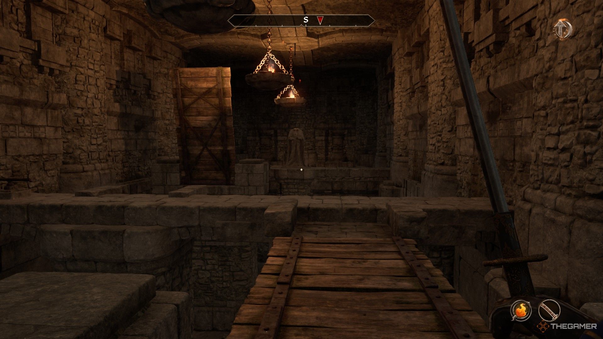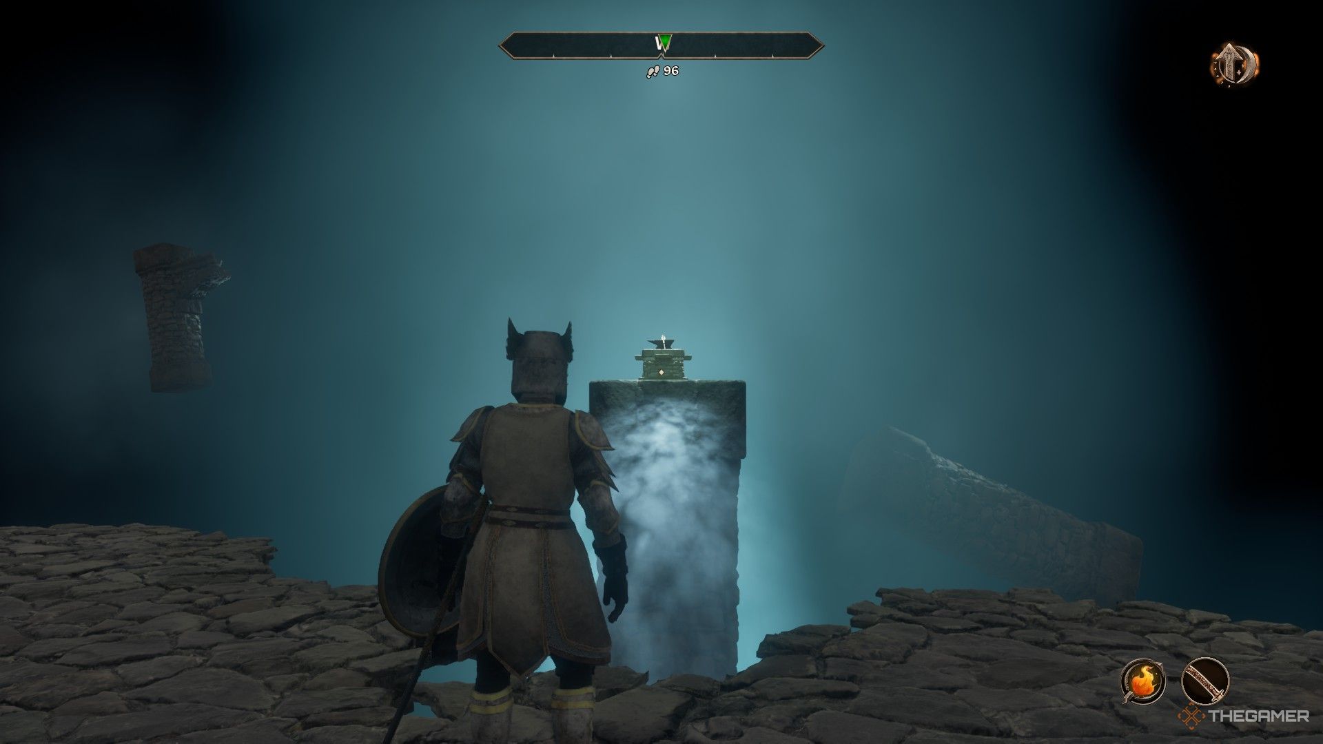 アンダークロフトの遠端で、聖カラダのffinと対話します。これにより、真新しいエリアに運ばれます。内部では、あなたとメイスを遠くの台座のメイスを分離する大きな割れ目が見えます。目に見えて、それは今後の方法がないように見えます。