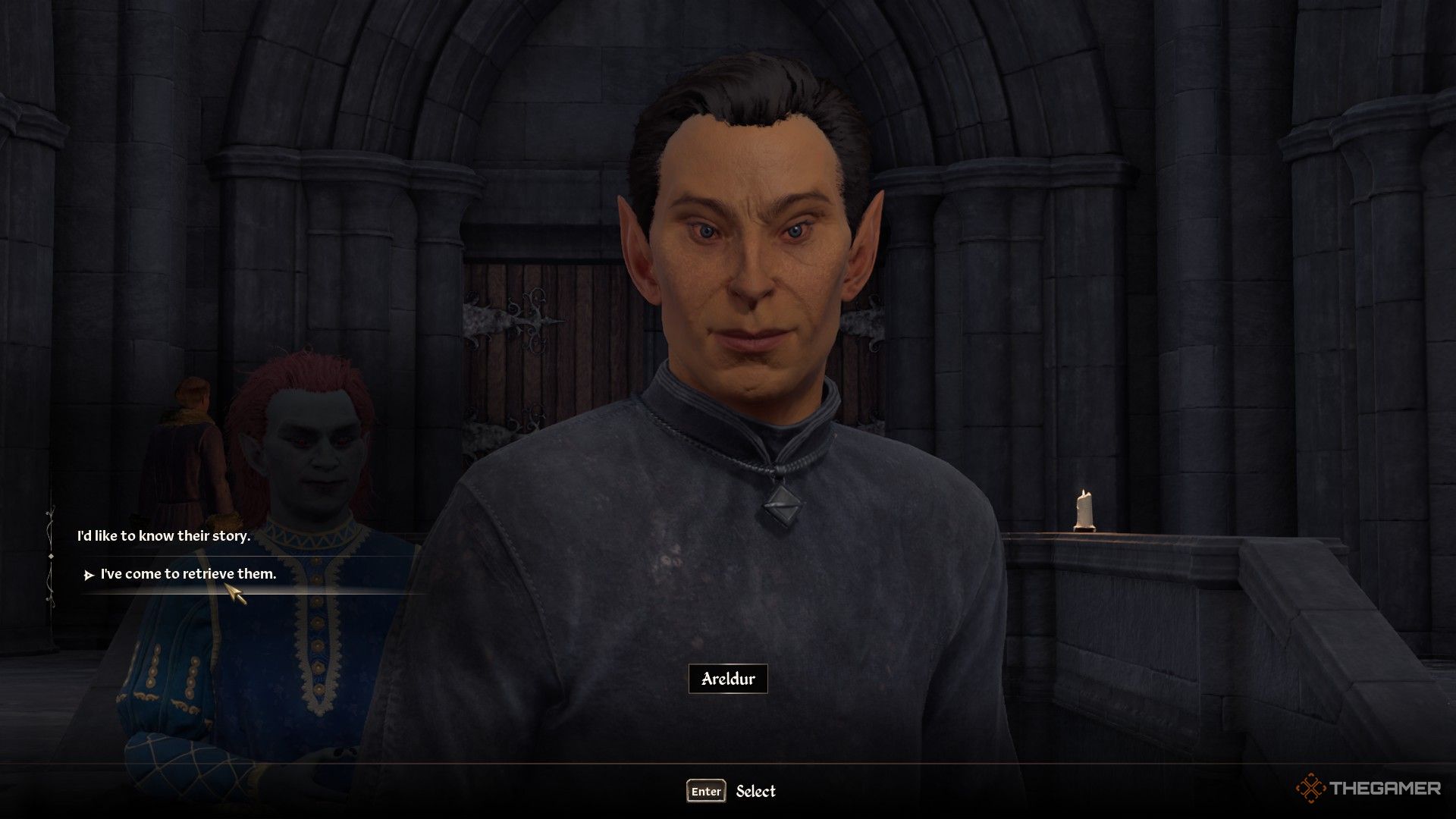 彼らとやり取りした後、ハイエルフの司祭に話しかけてください、アレルドゥール、ガントレットについて。あなたがそれらを取り戻すようになったことを彼に伝えてください。