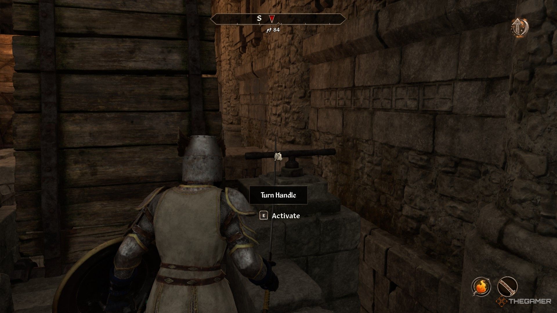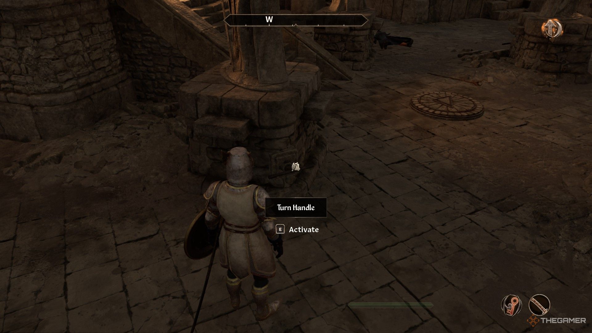 を取る左側の狭い階段、 その後レバーのハンドルを回します最初の跳ね橋の右側にそれを下げます。