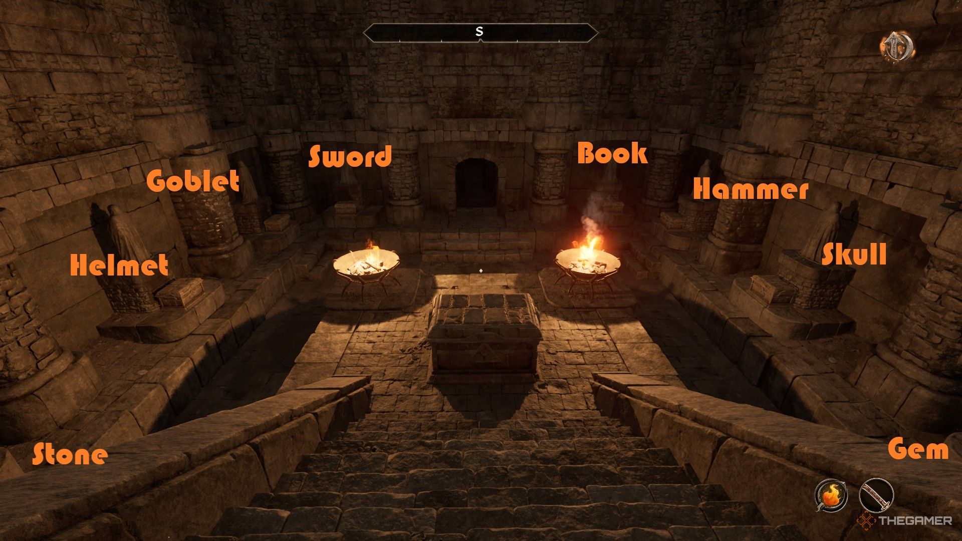 あなたの仕事は次のとおりですこのアイテムを正しい胸に入れます。パズルソリューションは次のとおり、後ろの左隅(胸から)から始まり、時計回りに移動します。