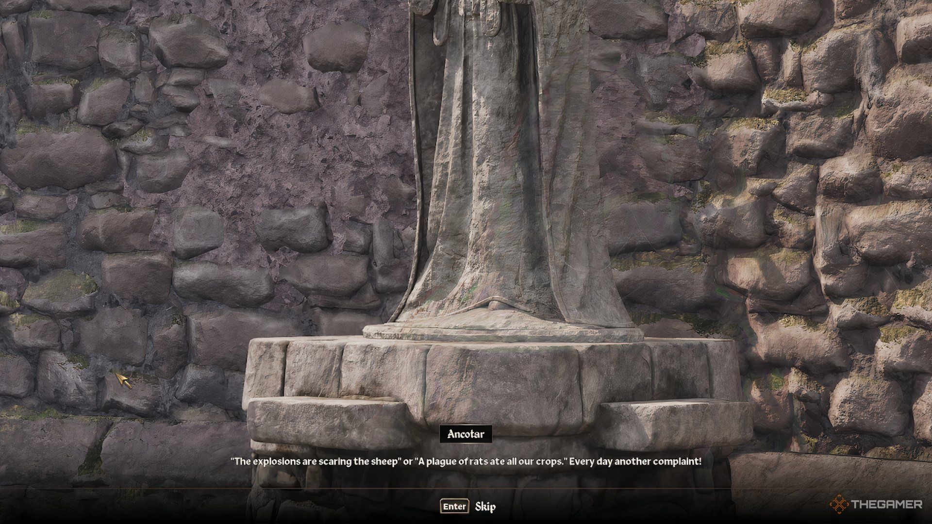 敵の砦をクリアしたら、Ancotarに相談する必要があります。彼は村人のように見えないでしょうが、廃insを歩き回っている間、彼はあなたに叫ぶように叫ぶでしょう。彼は通常遺跡の2階または3階、だから彼の目に見えないアウトラインを探してください。