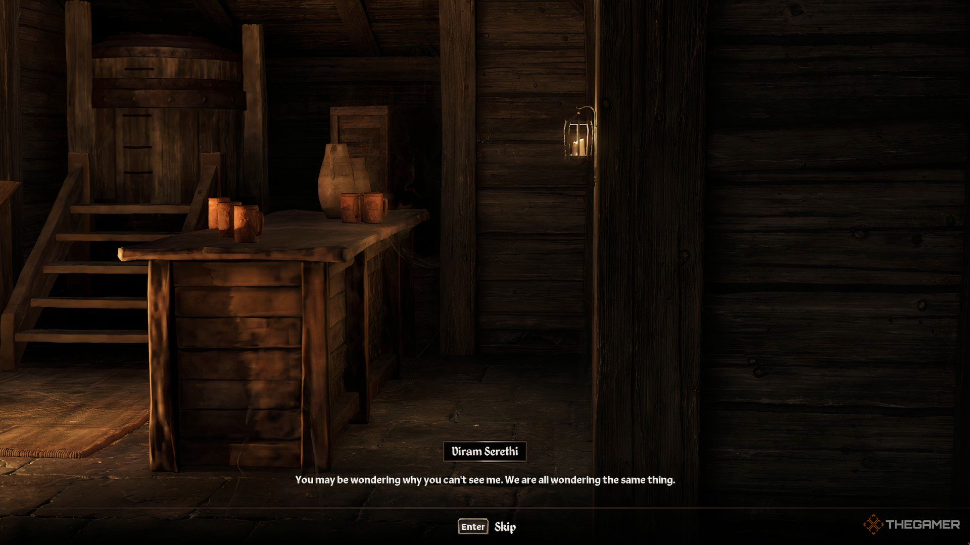 インに入ると、目に見えないNPCが呼び出されますディラム・セレチはあなたと話します。彼は、村のすべての人が見えないこと、そしてそれがアンクタルと呼ばれる魔法使いのせいだったことについて話します。