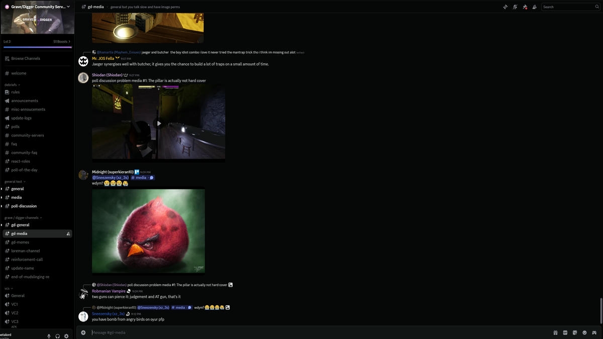 Discordサーバーには、それぞれが特定の目的専用の一連のチャネルが搭載されます。たとえば、#update-logsはゲームの最近のすべての変更をリストしますが、#loreman-channelは墓/掘り出しの伝承について議論する場所です。さらに、音声チャンネルに参加して他のプレイヤーと話をしたり、ゲームプレイをライブストリーフすることもできます。