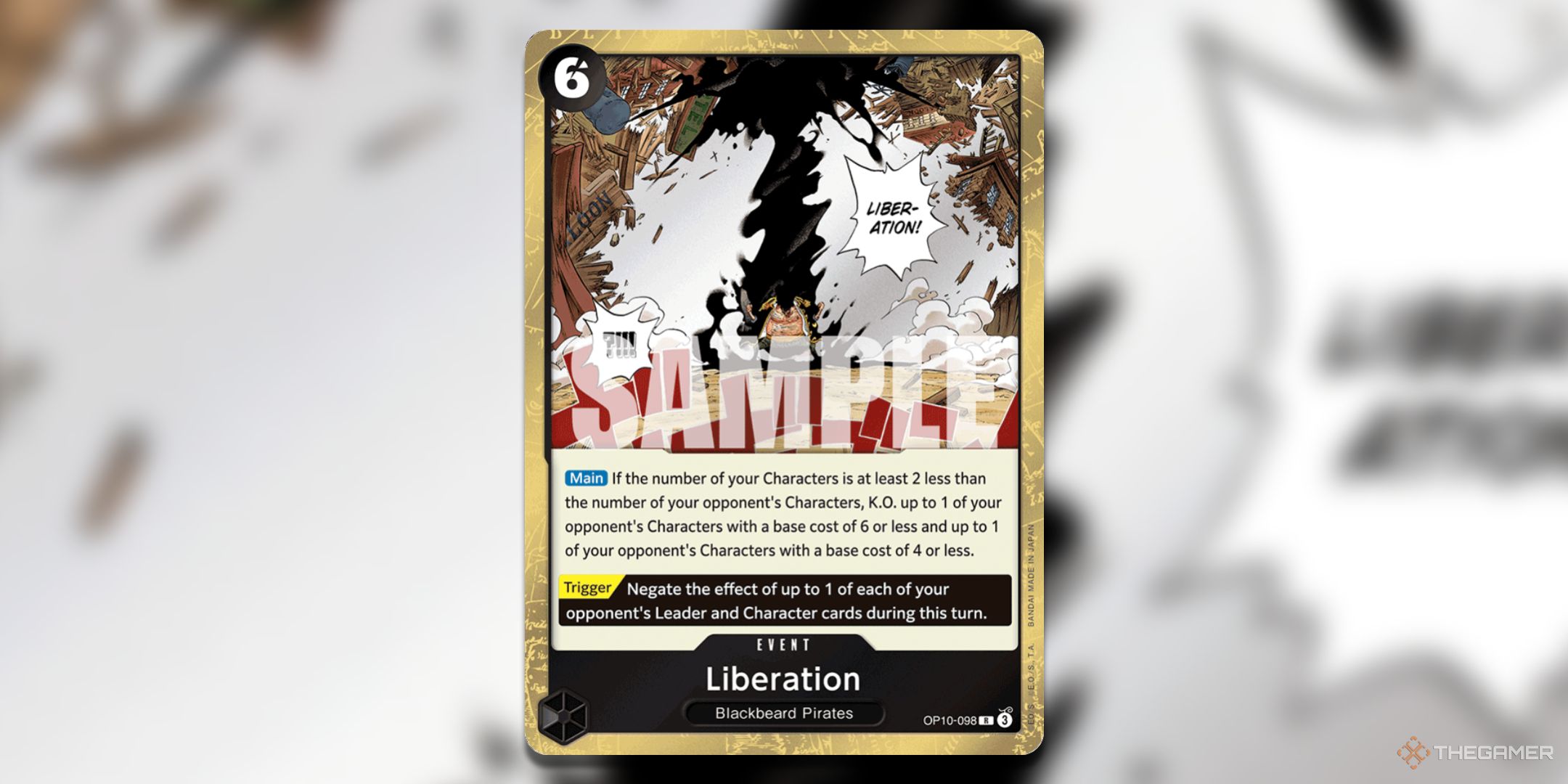 Marshall D. Teachは、このセットでKuzanと素晴らしいカードを受け取っただけでなく、デッキには素晴らしい削除カードであるLiberationも手に入れました。 Blackbeard Pirates Deckは、10コストの黒ひげを安全に落とすことができるまで待っているため、通常は解放が常にライブになるため、あまりにも多くのキャラクターを搭載する傾向がありません。