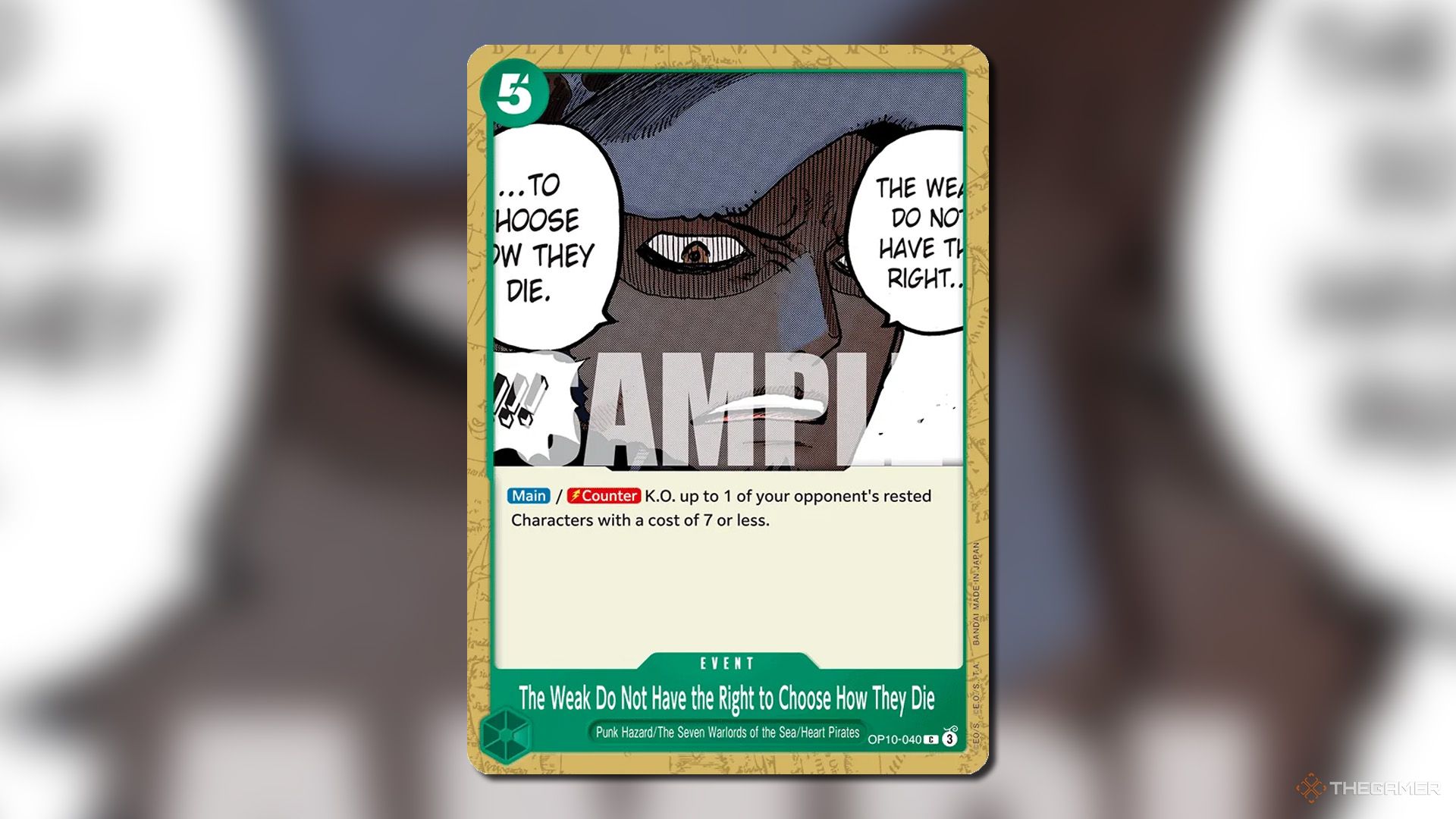 Caesarのリーダーカードは強力かもしれませんが、彼のキャラクターカードも緩んでいません。実際、その主なトリックは、それがKo'dになったときにアクティブになります。それは劇的な才能のためにどうですか?このカードがほこりを噛むと、デッキからまっすぐに笑顔を演奏し、手持ち式、支払いなし、瞬時にねばねりした混乱があります。
