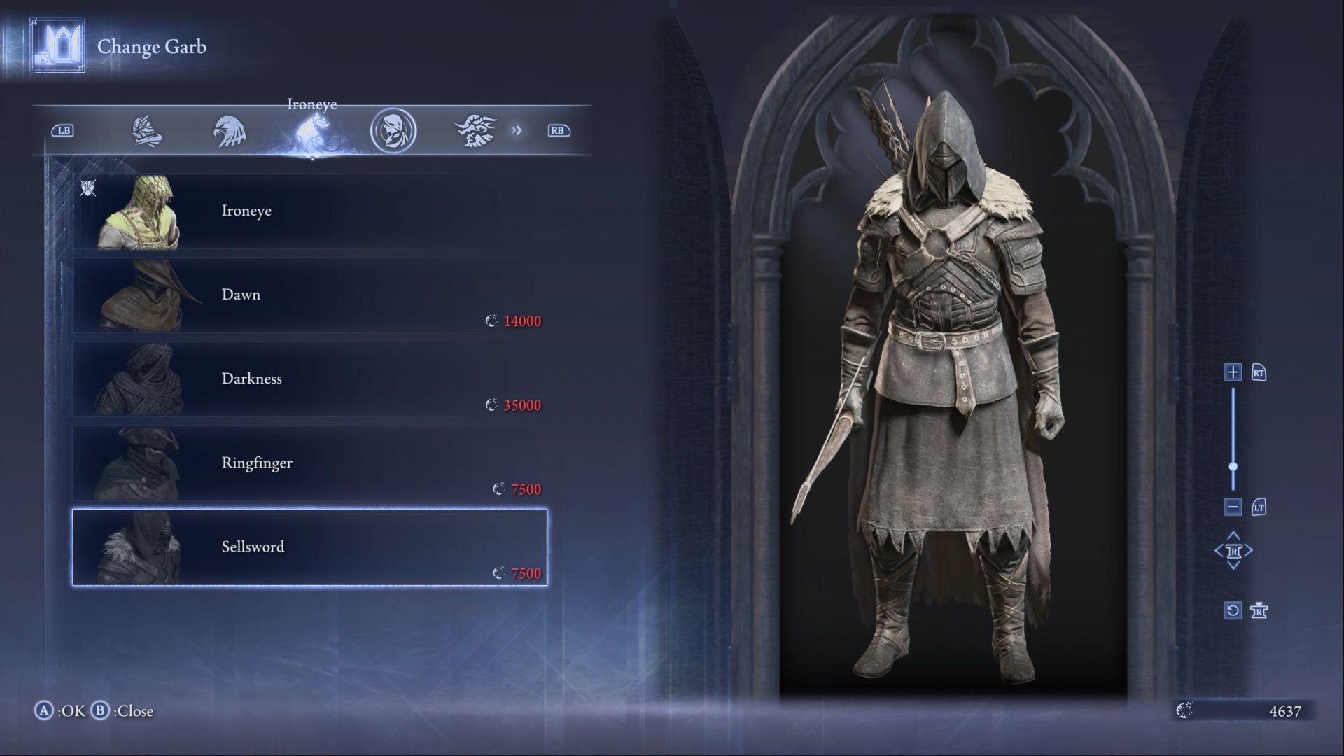 Ironeyeは、Sellsword Skinで初めて登場します。これは、Dark Souls 2のLlewellynセット(ヘルメットを除く)で非常に明確に登場します。このアーマーセットは首相のウェラガーに属し、王の通路内のストーンナイトによって落とされます。アイロニーに非常によくフィットする上から下まで、驚くべき肌!