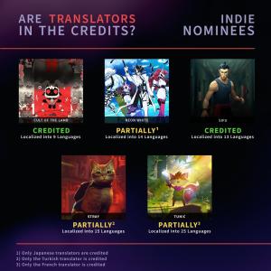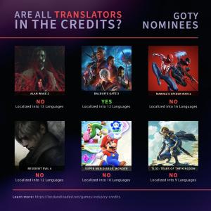 2022年以来毎年、ダニロフはゲームオブザイヤーとベストインディーゲームの候補者を分析し、翻訳された言語の数と翻訳者のクレジットを持っている言語の数をチェックします。結果はX(以前のTwitter)とLinkedInで共有されます。