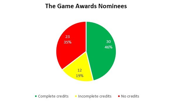 「私の個人的な経験は必ずしも全体を代表しているわけではないので、候補者を分析することはより良い絵を描くと思います。これらは私たちが話している最大で最も有名なゲームです」と彼はDot Esportsに語った。 「しかし、研究を開始するための本当の「トリガー」は、私が取り組んだゲームの複数がノミネートされたことを見たときだったと思います。それは「これをしなければならない」と思ったときでした。」
