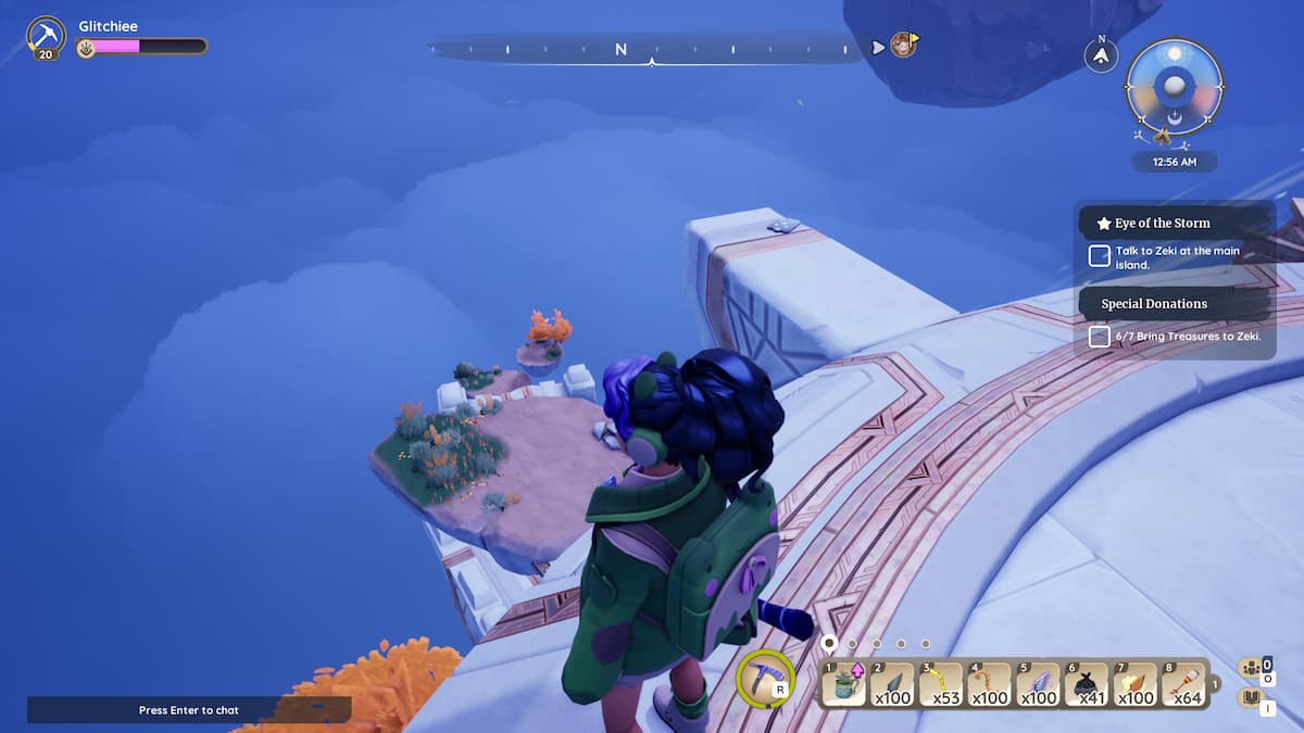 地面と風の流れのさまざまな浮遊塊を使用して、エレメンタルシンボルでマークされ、大きな卵があるタワーレベルに向かいます。アイテムは卵よりも塔の反対側にあり、露頭。