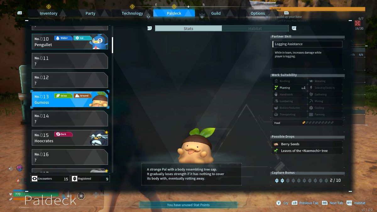 グモスは、リソースを収集するための必須パルです食べ物を育てるパルワールドのあなたの基地で。作成したらベリープランテーション、グモスはイニシアチブを取ります植物の種可能な場合はいつでも。ペンガレットのような水の仲間と連携して作業すると、作物を手入れするために多くのことをする必要はありません。