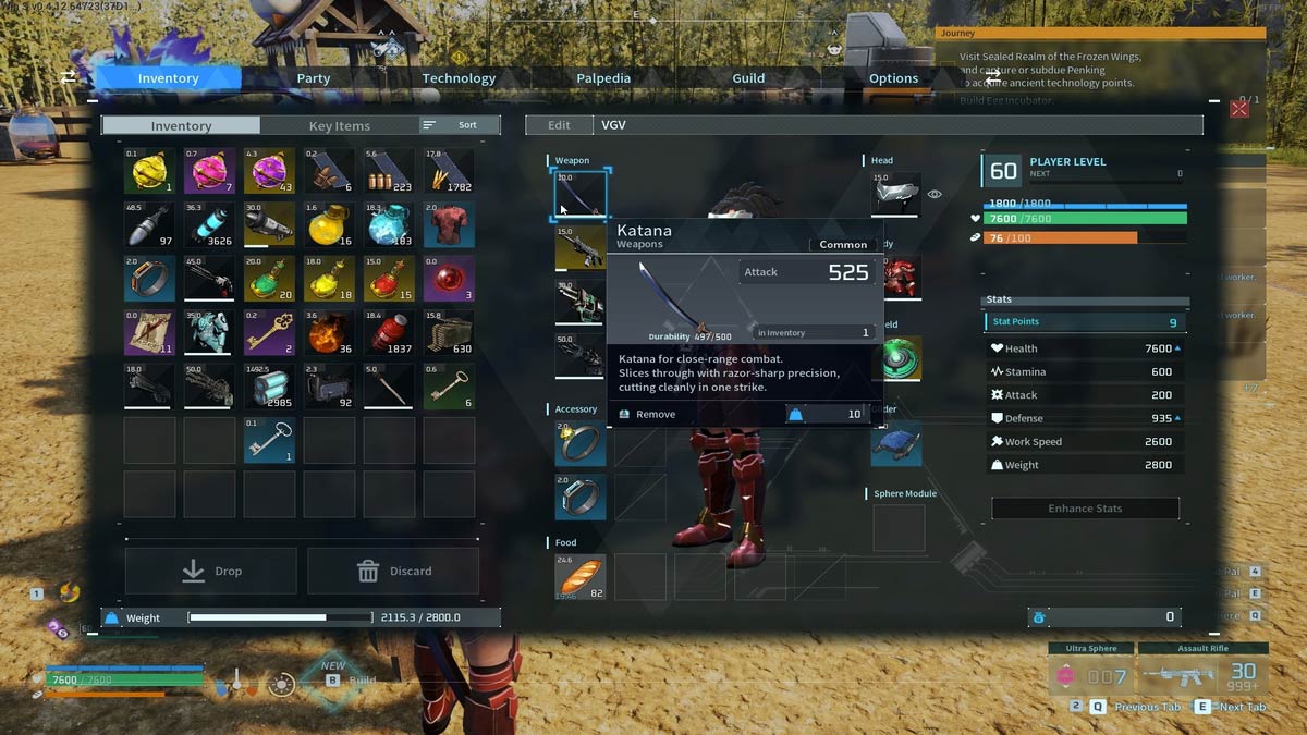 必要があるレベル29に到達しますそしてKatana Blueprintのロックを解除しますテクノロジーツリーからこの近接武器を作成しますPalworldで。