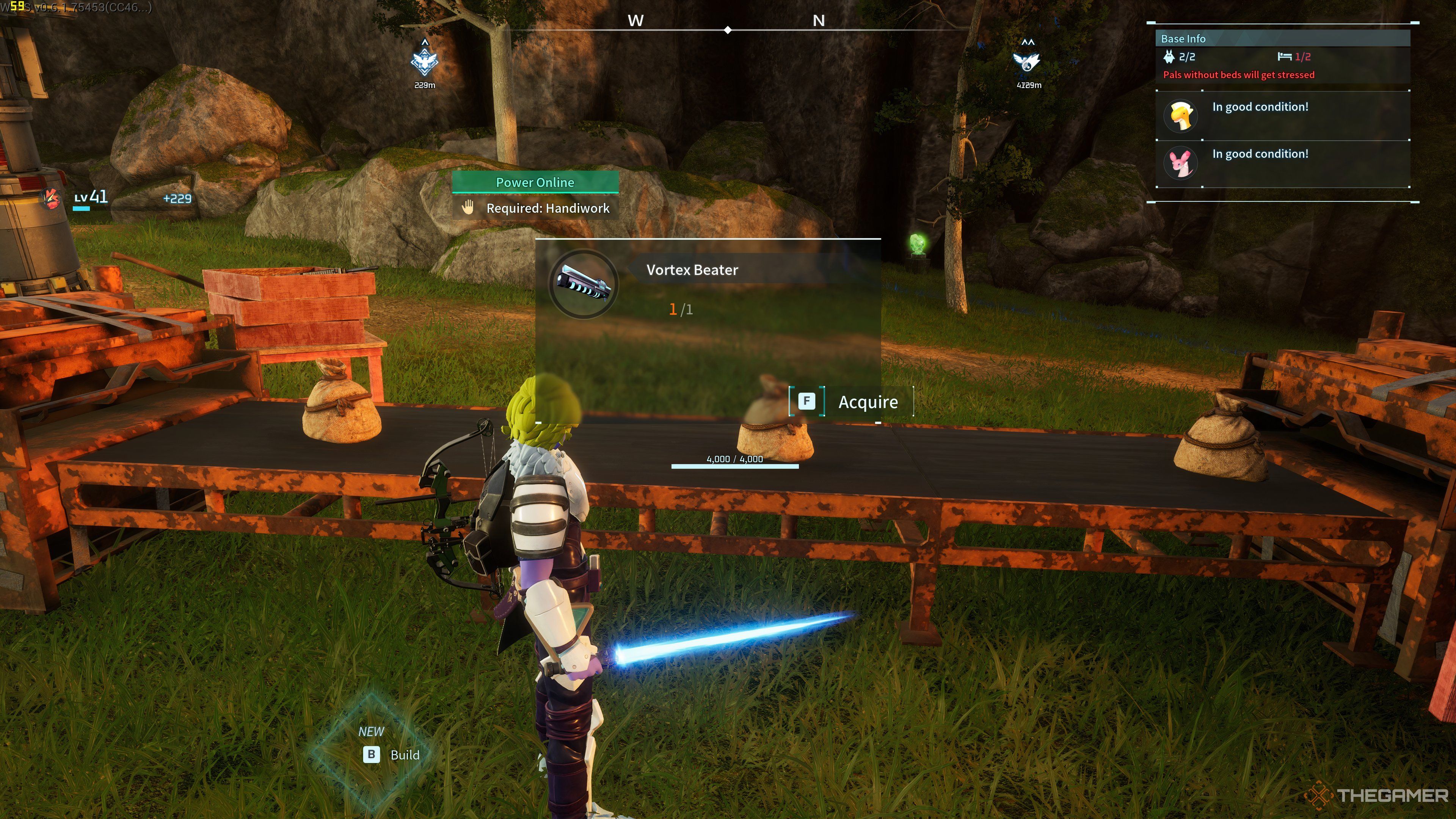 武器の組み立てラインがセットアップされ、電動PALを搭載したら、武器を作成するために高い手仕事の特性を持つ仲間を選択してください。組立ラインUIを開きますVortex Beaterを選択してくださいページの下部近く。
