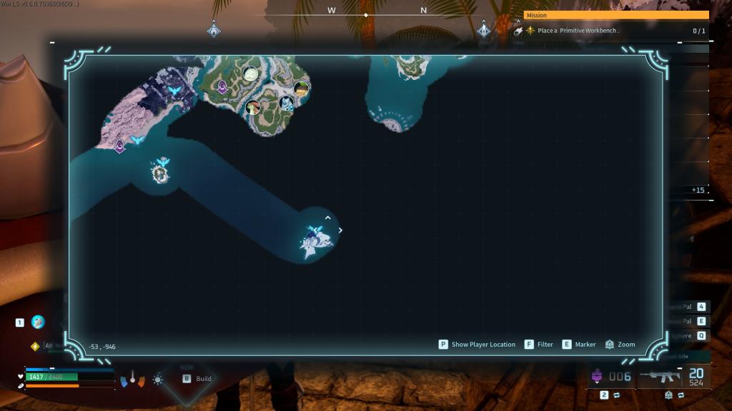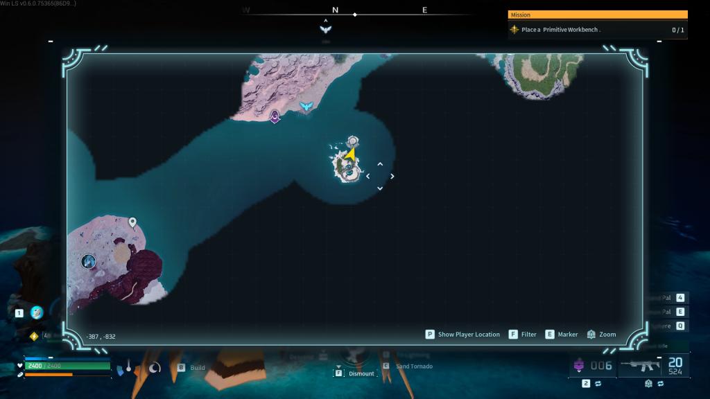 氷河のコア島は氷河と砂漠のバイオームの間にあり、最も近い速い旅行はPAL遺伝子研究ユニットの塔の入り口にあります。そこから、島に到達するためにスクリーンショットにマークされているように北に移動します(凍っていることからあなたを守る服を着ます)。