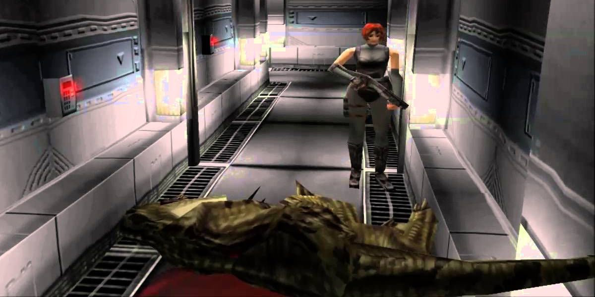 私はディノ危機を終えていません。私はかろうじてDino Crisisをプレイしませんでした。しかし、それにもかかわらず、私はディノ危機の非常に明確な記憶を持っています。私はオープニングを非常にはっきりと覚えています。あなたは夜に外のいくつかの大きな囲いの中にいます。あなたは他の男と一緒にいて、彼はドアを通り抜けて、あなたを一人で残します。