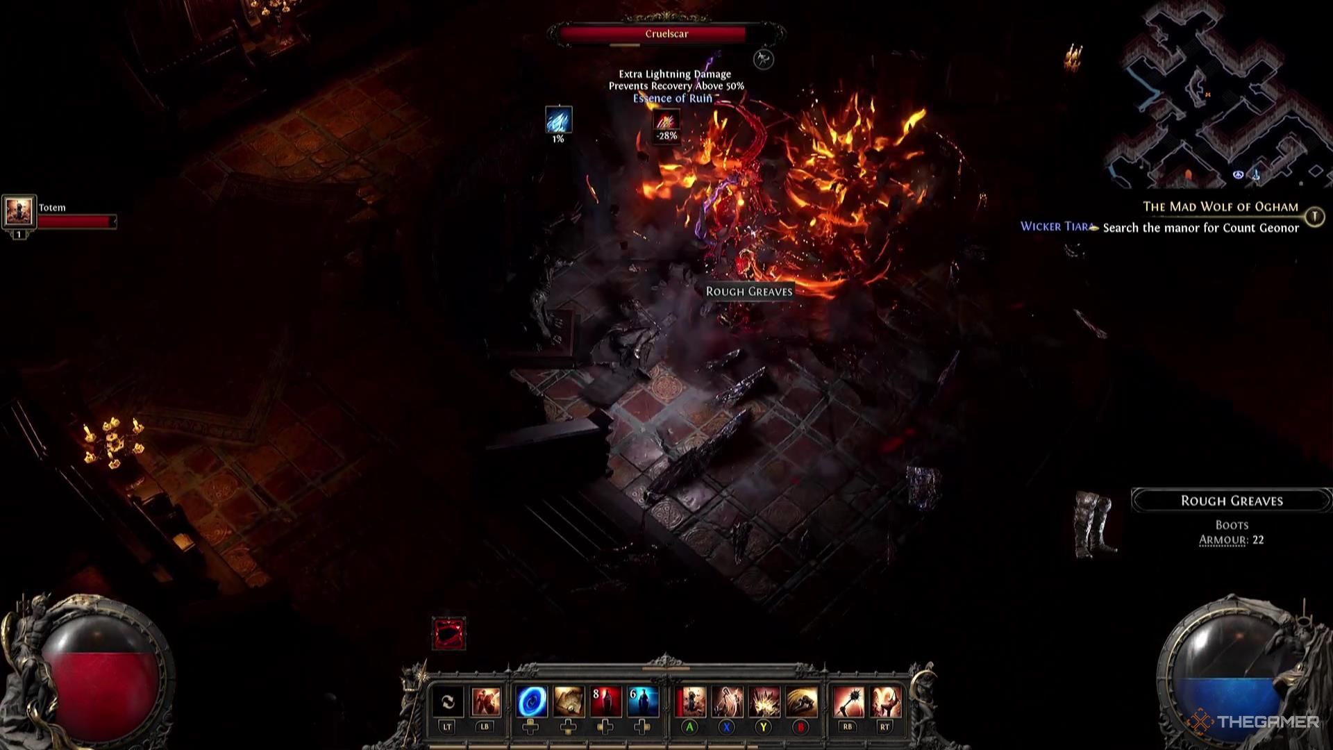 これらはすべてaを組み合わせます大量の効果(AOE)ダメージ。最初は、回転は通常行きますローリングスラム>ボネシェター、そして敵がまだ立っているなら、地獄の叫び>地震>衝撃波トーテム。