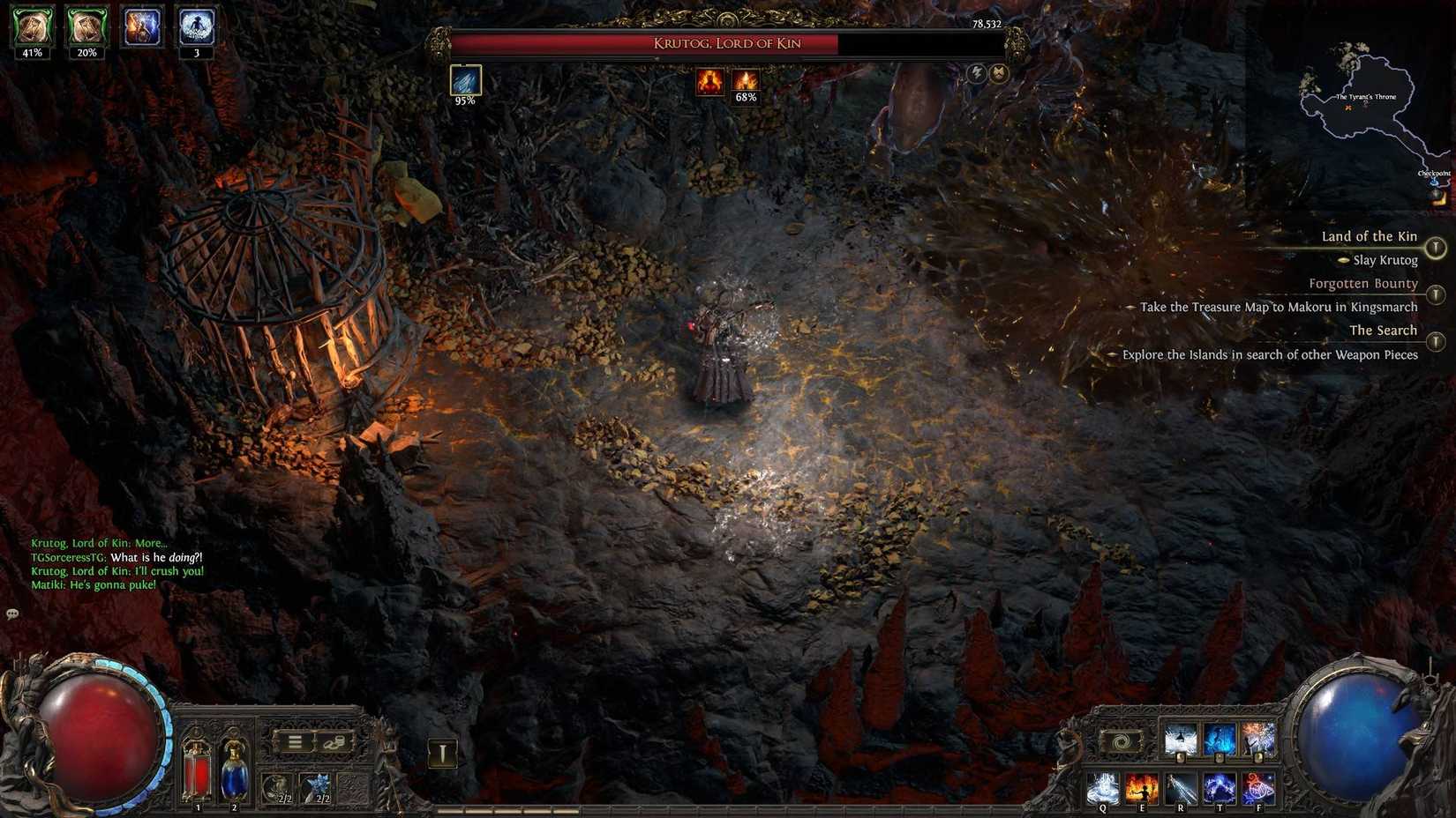 Krutogは非常にシンプルなボスであり、すべてを考慮しています。彼はいくつかのAOEスタンプとスラム、そして嘔吐の燃えるプールを残す大きな嘔吐攻撃を持っていますが、それ以外はそれほど難しくありません。