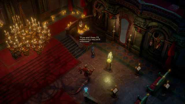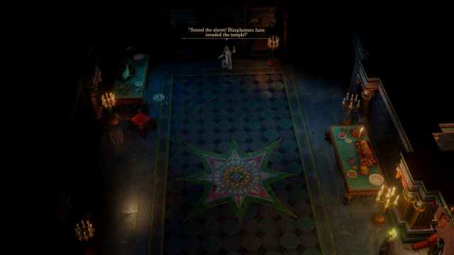 廊下を進み、左に進みますフォロワーの一人はあなたの到着に驚いて、あなたの右の部屋を通り抜けます。拠点全体は、宮殿の廊下や部屋でのあなたの脱出と存在について警告されますが、すべての主要なフォロワーは、彼らが戦いを聞いていないことを納得させようとします。これが恐怖に由来するのか、それとも彼らが戦略的に欺こうとしているのかはわかりませんが彼らの意図や嘘を信用したり、視界で殺したりしないでください。