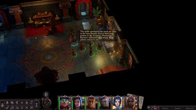 カルト主義者のすべてを倒したら、伝承を得るために右側の本と対話する:宗教エントリラズミールカルトについてもう少し理解してください。次に、左の鏡を通り抜けます。あなたはそこの部屋に到着します複数のマスクゴーレムに囲まれます。繰り返しになりますが、敵の仲間があなたの遠隔の仲間に対する敵の攻撃を防ぐように、それぞれのマスクゴーレムを攻撃することに近接仲間を集中させます。