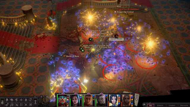 あなたは宮殿の向こうのバルコニーに到着します。ここで、あなたはフィンしますDA多数のフォロワー彼らがあなたに会ったらすぐにあなたを攻撃するのを待っています。彼らですバルコニー全体に広がります、つまり、彼らは攻撃の範囲がたくさんあり、あなたが注意しないと簡単にあなたを囲むことができます。これを回避します敵のライン全体に仲間を配置します彼らが各フォロワーグループを全面的に均等に世話することができるように。ここでは、あなたの遠距離の仲間は大いに助けになるでしょう。
