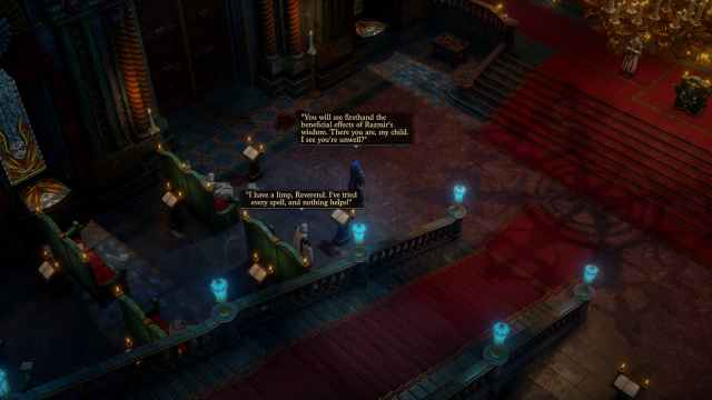 彼の説教を聴き続けるか、それらすべてを攻撃するか、すぐに礼拝堂を離れる。私は彼らのカルトを理解するために彼の説教をし続けました。伝承、私は正しいですか?とにかく、チャペルを離れることを決めた後、あなたは最終的にラズミールと彼のフォロワーを見つけるでしょう。彼らと戦って、あなたの努力にもかかわらず、あなたはあなたと一緒に部屋に立ち往生します仲間、あなたの力は、ラズミールの魔法の1つによって遮断されています。