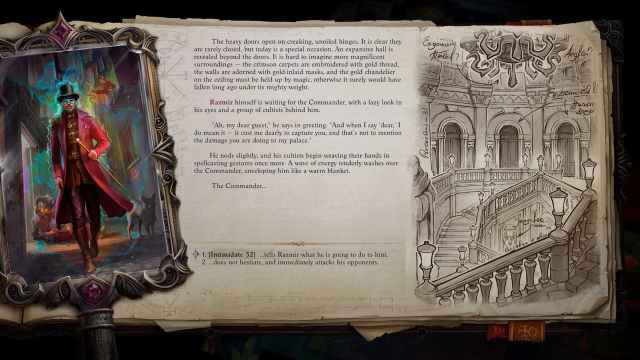 Razmirがこのお祝いの背後にあるものであることを発見したら、ポータルを通り抜けて、彼の宮殿に到着します。しかし、この拠点の最初のセクションはテキストRPGです。これは、対話オプションを介して宮殿を旅しなければならないことを意味し、テキストブロックを介してすべての結果が発生します。