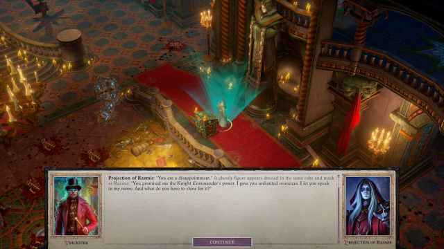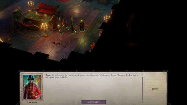 ありがたいことに、ロバス- ケナブルの同盟国の1人 - 私たちがやった直後にポータルを飛び越えましたカルト主義者として自分自身を偽装することによって敵の系統に潜入することができました。彼は私たちの部屋のドアのロックを解除し、ラズミール宮殿の拠点に取り組むことができます。今回は、ついにグラフィックと本当の戦いで。