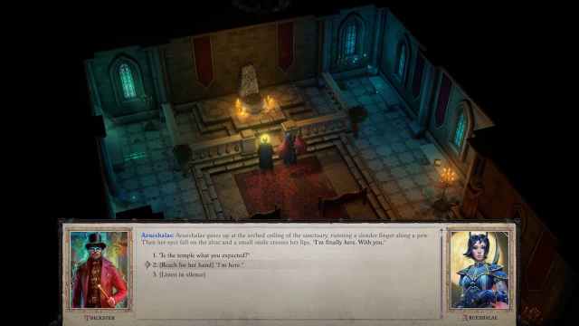 通り抜けるポータルにより、に到着します宮殿の拠点宮殿。テキストRPGセクションの後、あなたはあなたの仲間と一緒に残されますRovusが私たちを解放することのおかげで、Razmirのフォロワーに対してあなた自身をかわしてください自分をカルト主義者に偽装した後。エリア全体を探索すると、最終的にはラズミールと戦うメインの玉座に到着します…