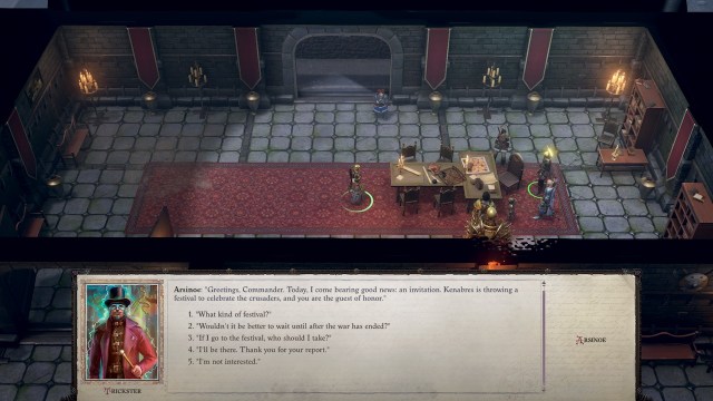 第5章の冒頭でドレゼンの城塞で休んだ後、あなたは訪問されますアルシノエ誰があなたとあなたの仲間の残りをケナブルに招待しますお祝いでいっぱいのフェスティバル、司令官とあなたのすべての成果が祭りの焦点です。ケナブルに旅行しますカラフルで少し疑わしいこの神秘的な祭りを始めるために、招待状の背後にあるロバスとの出会い - フェスティバルの背後ではありません。