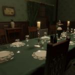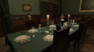 - わずかに大きく、非常に派手ですダイニングルーム緑のテーブルクロスで覆われた長いテーブルが特徴です。この部屋には、ゴーストがノックオーバーして投げるためのアイテムがたくさんあります。