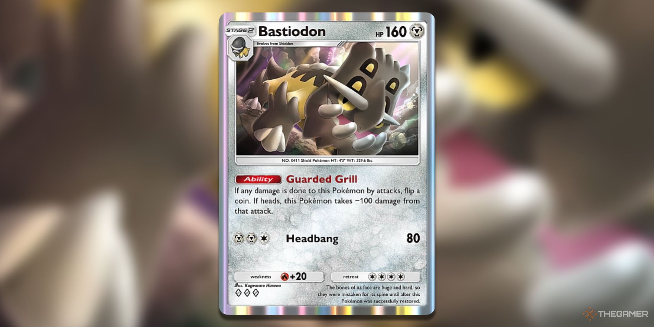 対戦相手がbastiodonを攻撃すると、フリップを強制します。頭に着地し、その損害の100がナーフ化されます。それよりも低い損害は完全に消されます。また、これは、相手をステータス条件に苦しめることができる場合、防御のためにコインフリップを積み重ねるユニークな方法でもあります。